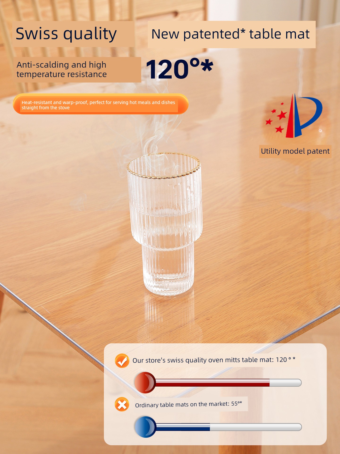 [Transparent] [New Patent] Swiss Quality Mother and Baby Grade Antibacterial* Anti-Scalding and Oil-Proof 120°Edging