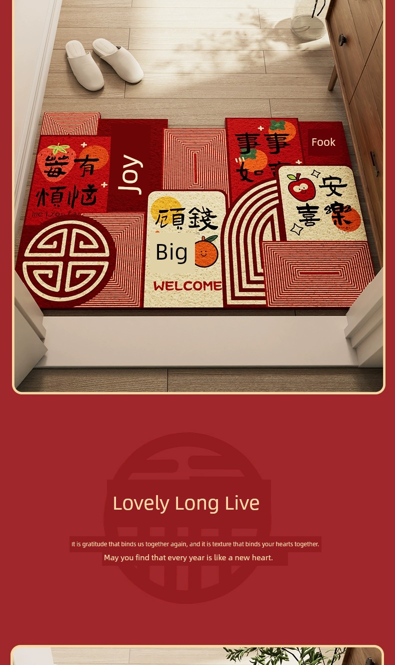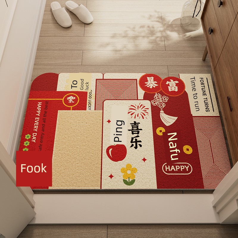 Home Non-Slip Stain-Resistant Red Floor Mat Can Be Cut at the Door