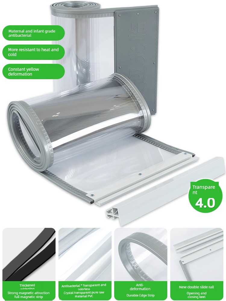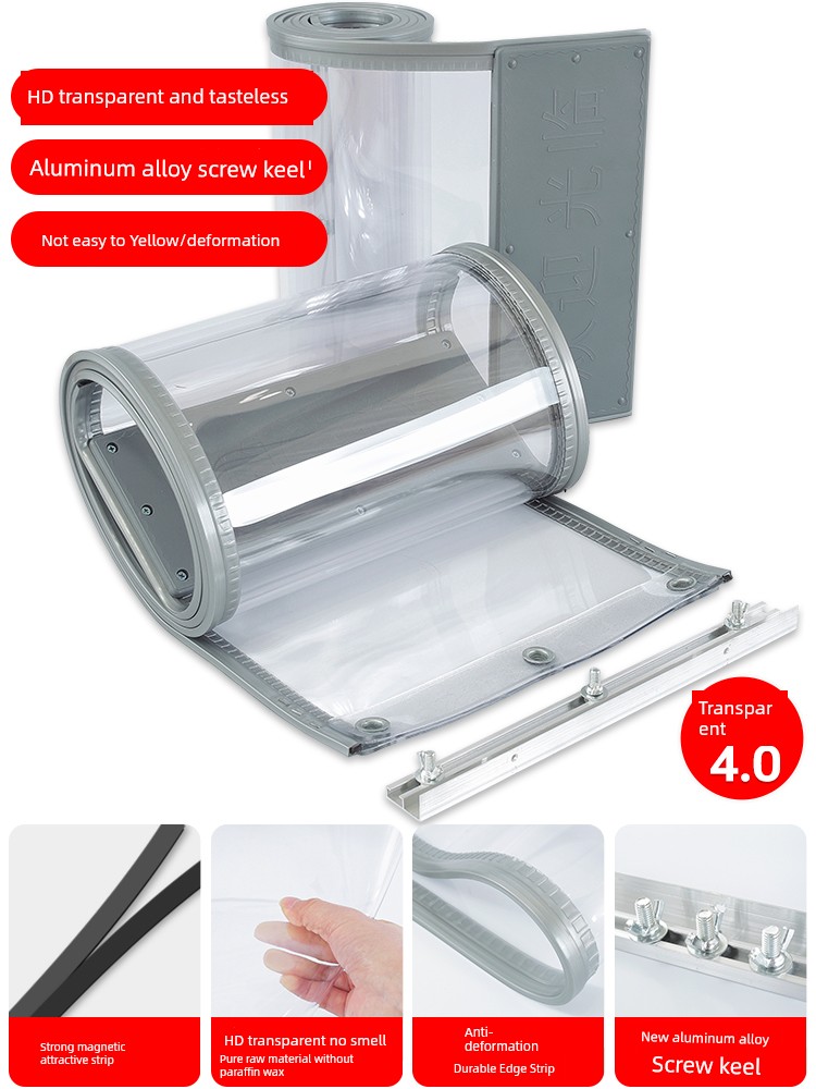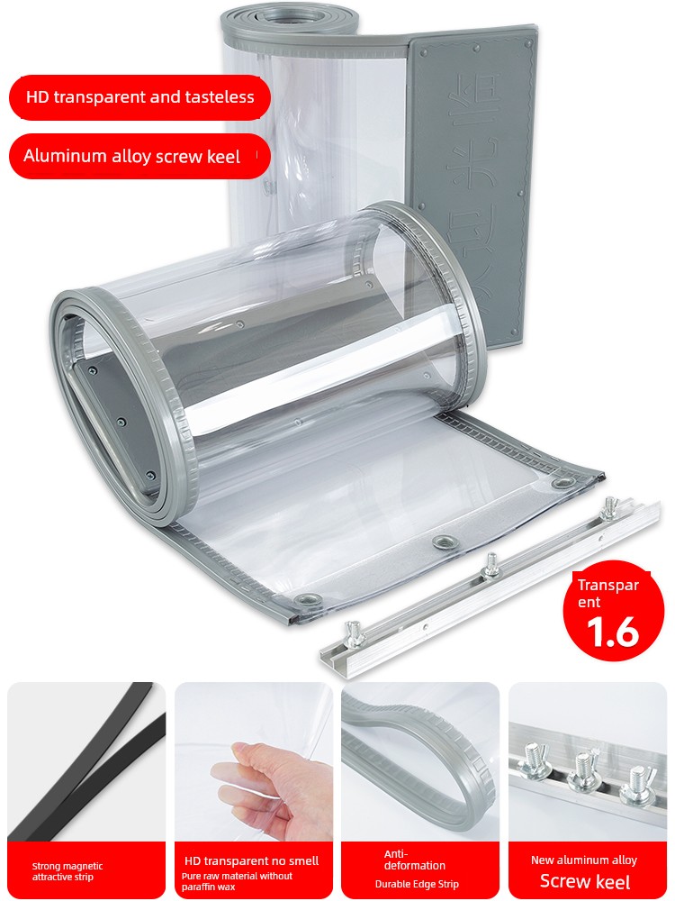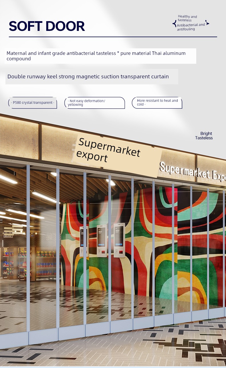 Magnetic Door Curtain Air Conditioning Supermarket Commercial Self-Priming PVC Plastic Transparent Windproof Cold-Proof Partition Soft Door Curtain