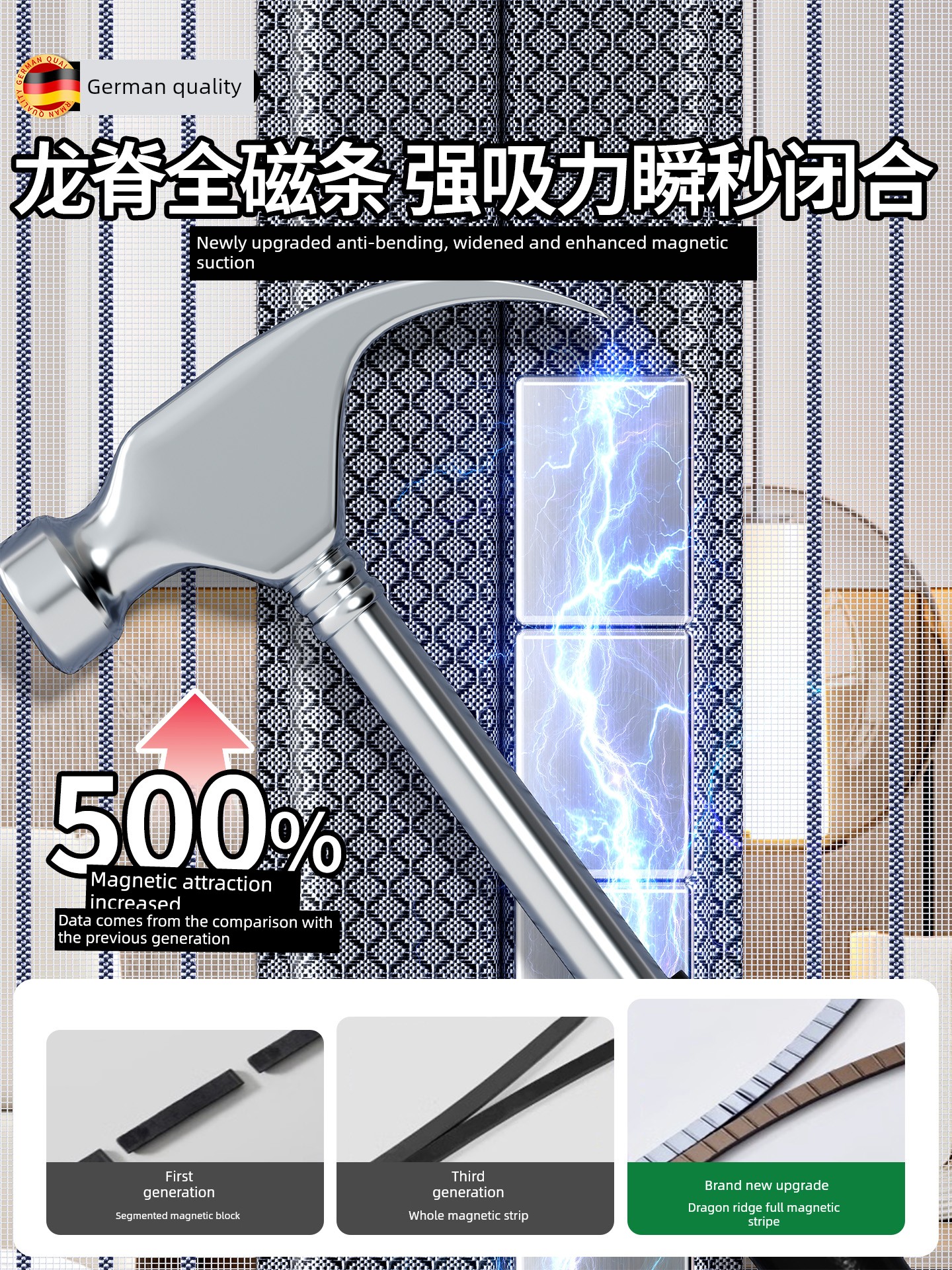 Anti-Mosquito Door Curtain with Full Magnetic Strip, Strong Magnetic Self-Adhesive Screen Door and Window, High-End Household Use, 2026 New Model, Self-Adhesive