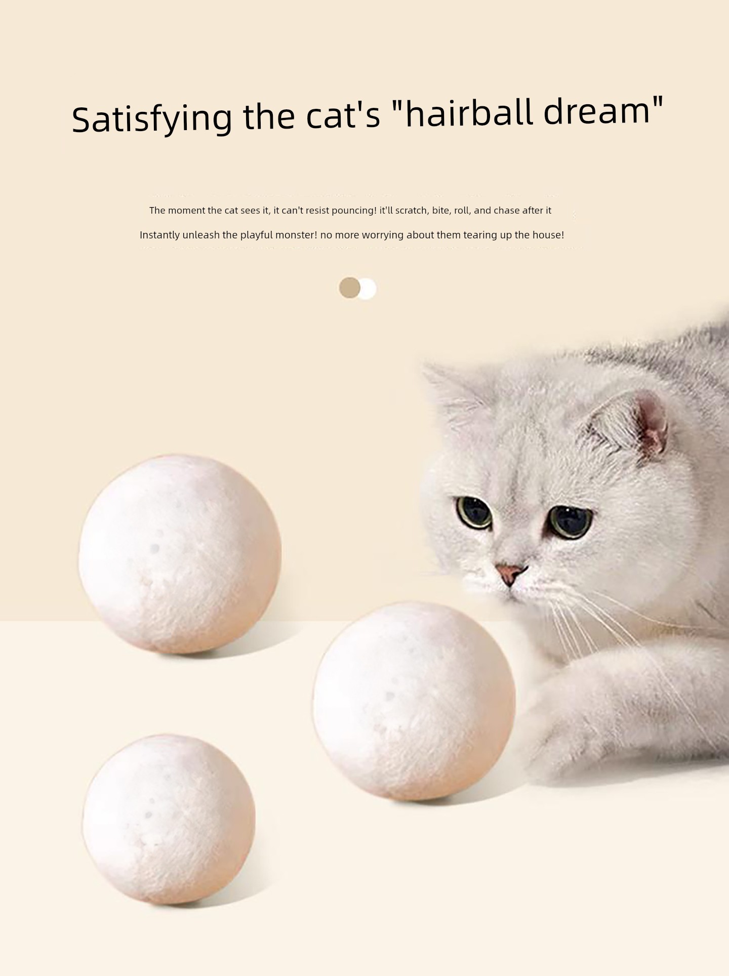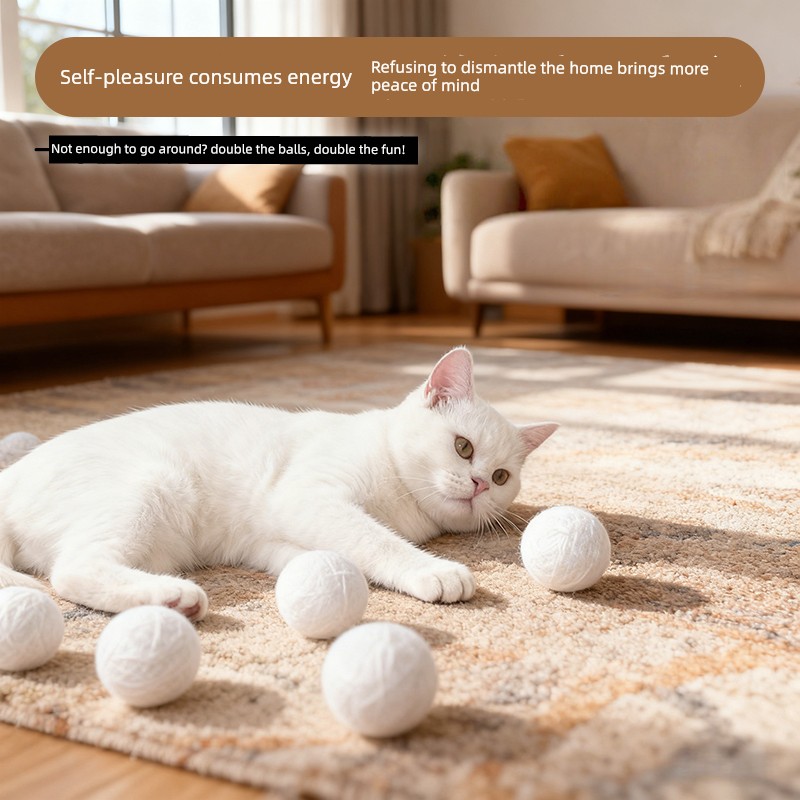 Cat Prey Ball Silent Wool Ball Toy Cat Chase Self-Entertainment Boredom-Relief Gadget Cat Teaser Stick Durable and Silent