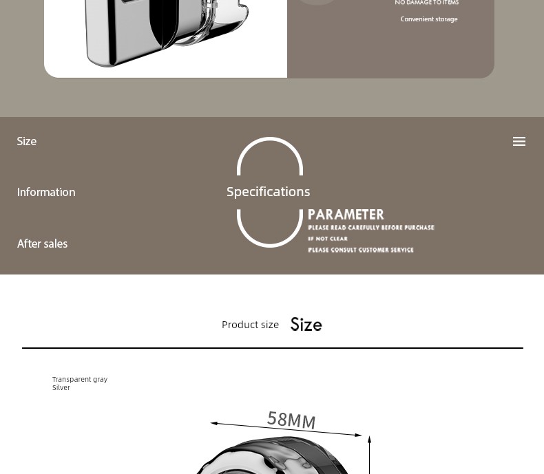 [Transparent Gray Silver] Double-Headed Suction Cup Hook (1 Piece)