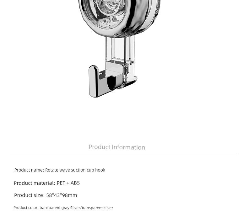 [Transparent Gray Silver] Suction Cup Rotating Universal Hook (1 Pack)