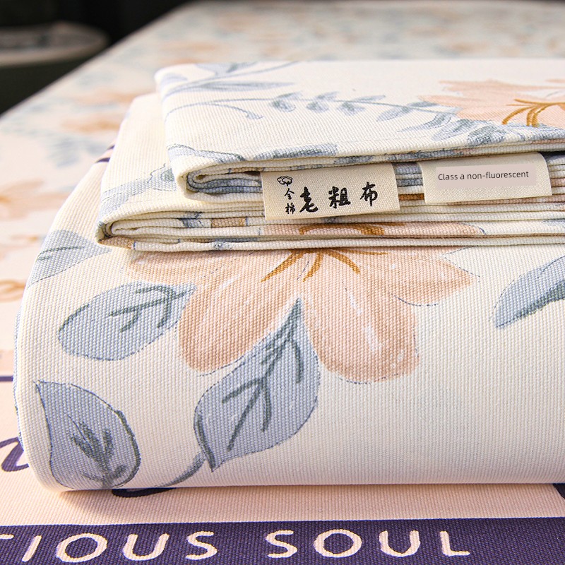 Muji Coarse Cotton Bed Sheet Single Piece 100% Xinjiang Pure Cotton Thickened Quilt Cover Fitted Sheet Pillowcase Three-Piece Set