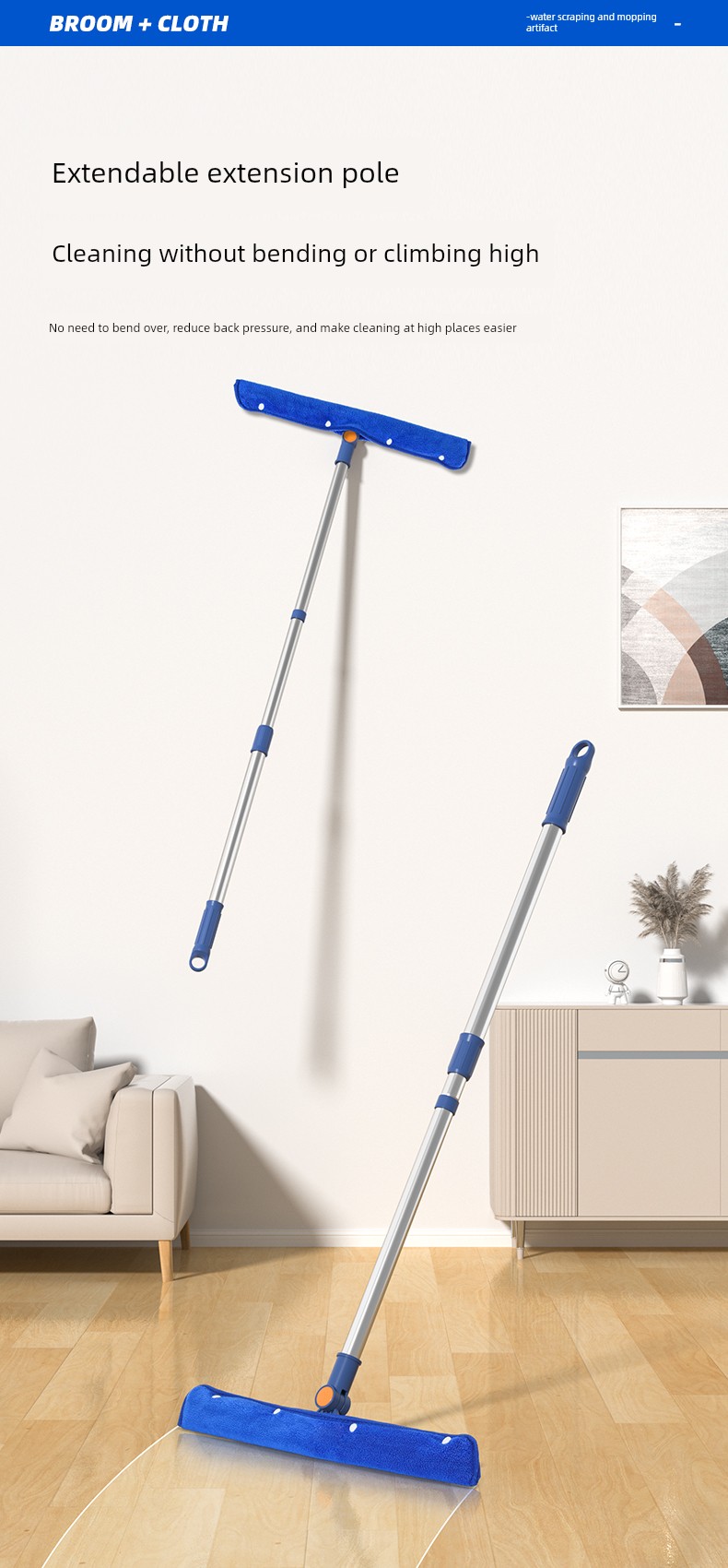 Large 55cm Magic Broom + 2 Pieces of Cloth [Sweeping and Scraping 3-in-1]
