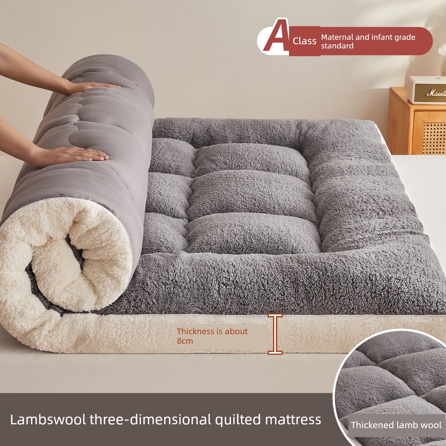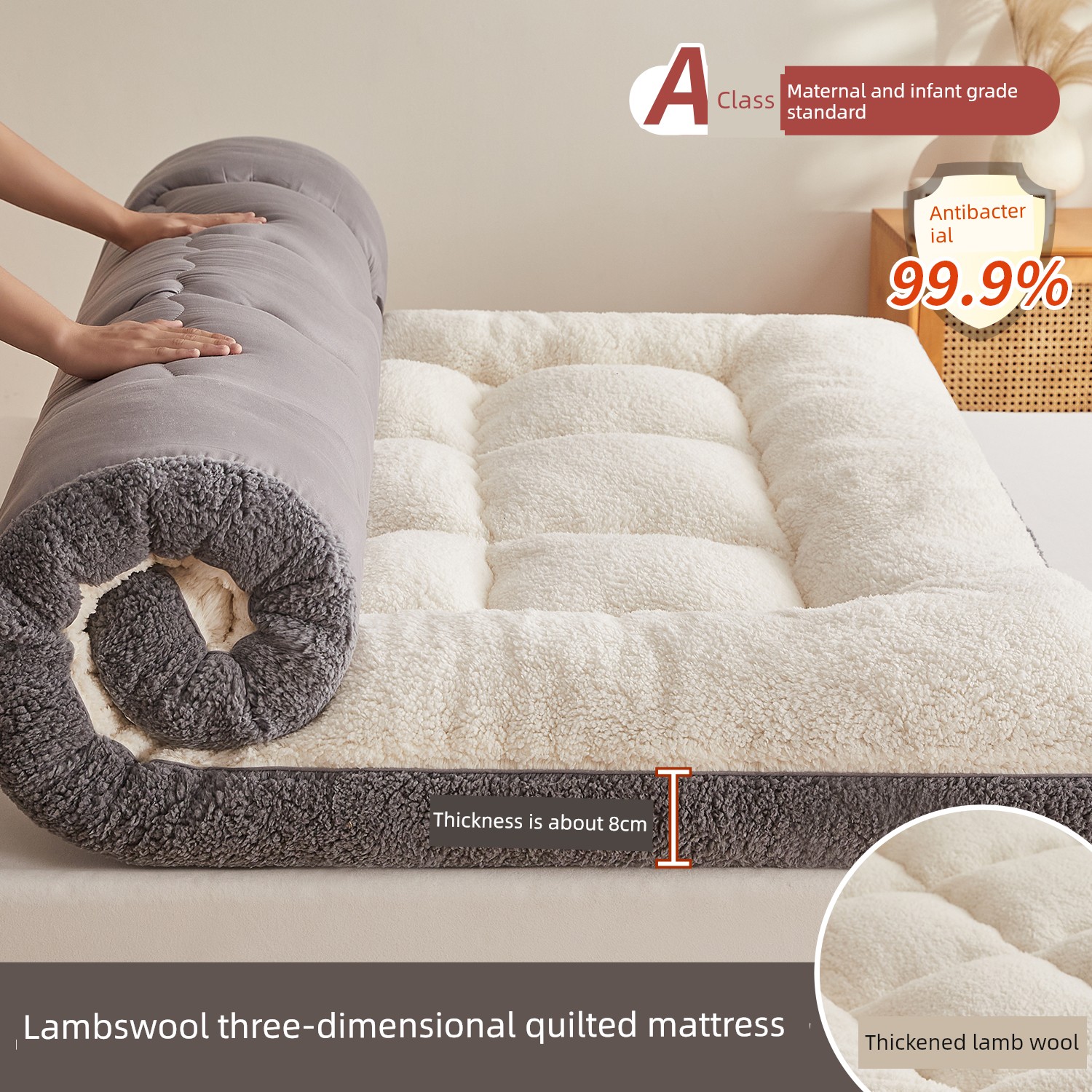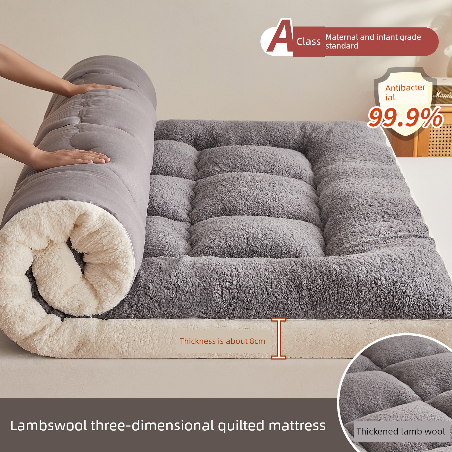 7A Antibacterial Upgrade - Elegant Grey - Approximately 8cm Thick [Warm Lambswool, Instantly Cozy]