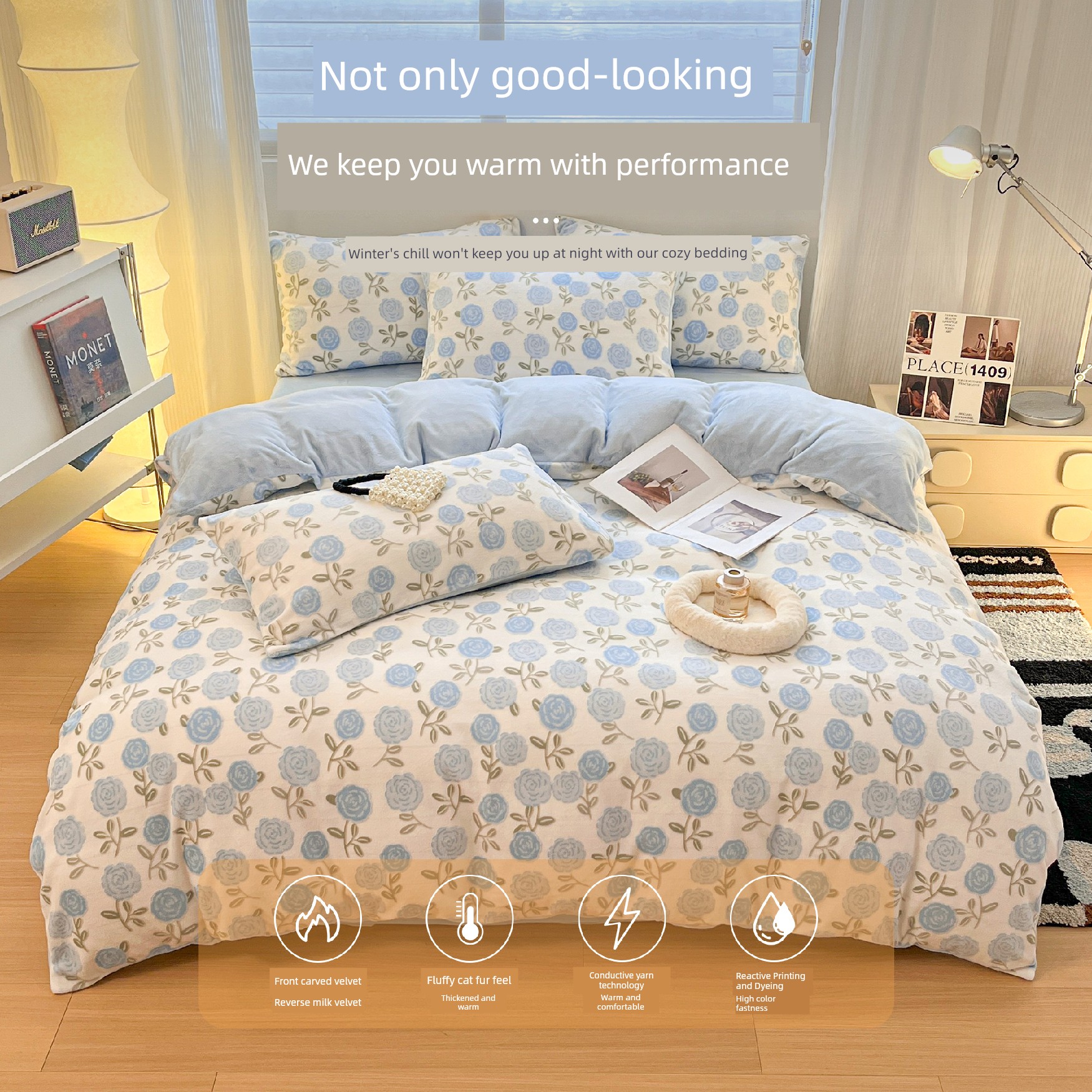 Flowers-Sky Blue [Thickened Encrypted Milk Velvet✅Antistatic✅Not Easy to Shed Hair✅Brand Quality Inspection✅】