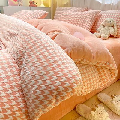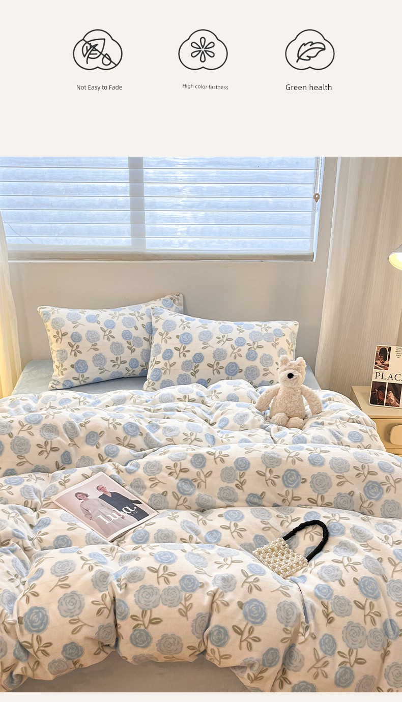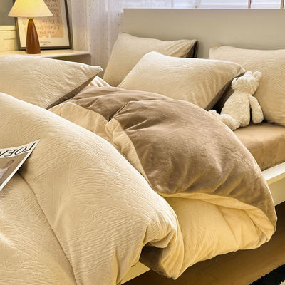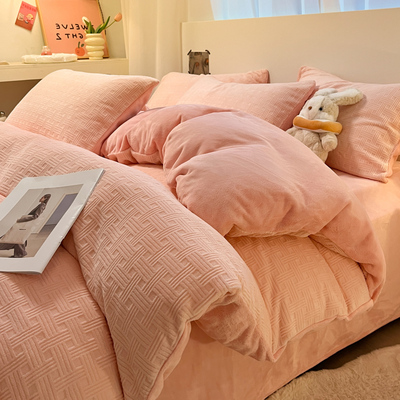 2025 New Milk Velvet Four-Piece Bedding Set, Fitted Sheet, Winter Coral Velvet Bed Sheet, Duvet Cover, Three-Piece Bedding Set, Quilt Cover