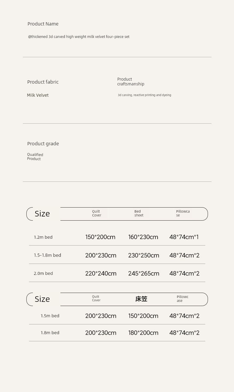 1.5m Bed [Milk Velvet Fitted Sheet Set of Four] - Suitable for 200X230Cm Quilt Core