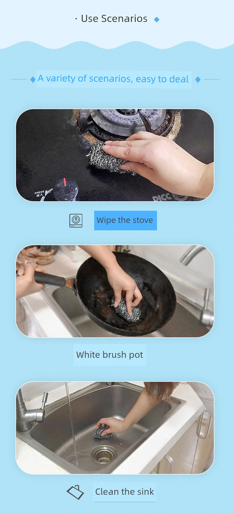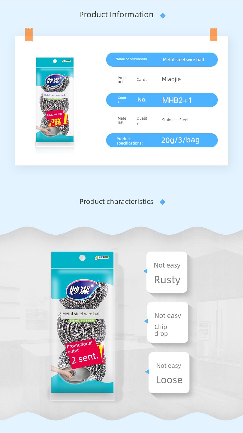 Miaojie Kitchen and Bathroom Scale Removal Metal Steel Wire Ball