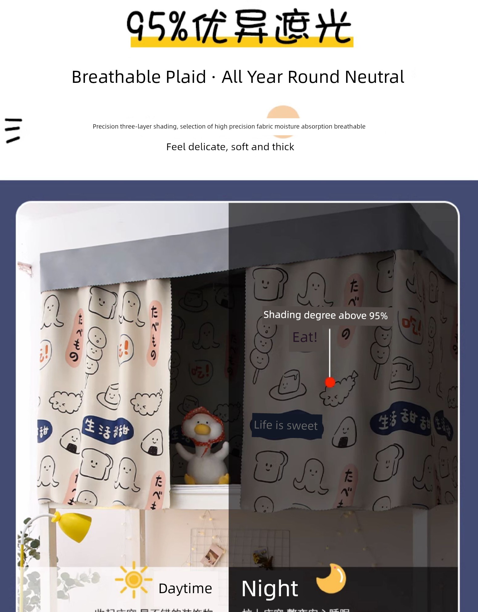 Strong Blackout Thickened Bed Curtain for Dormitory Upper Bunk, College Student Bunk Bed, Female Curtain, Partition Curtain, Window Curtain, Under-Desk Cover