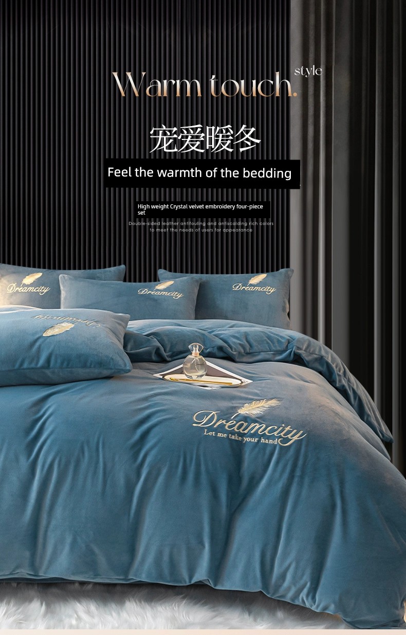 Thickened Milk Fiber Winter Bed Sheet Duvet Cover Four-Piece Set