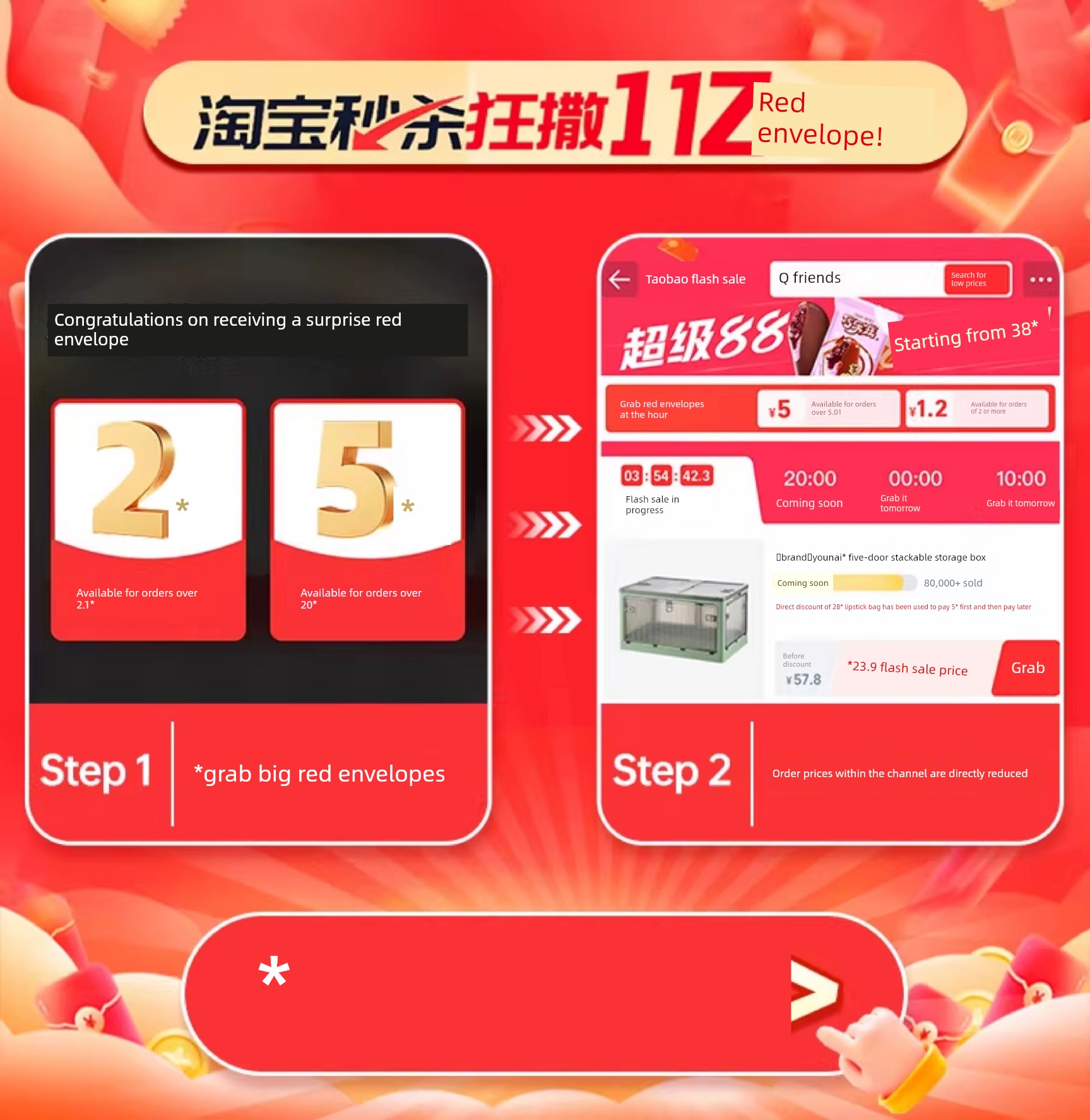 Three-Door Transparent - Vibrant Orange [Double-Sided Side Opening / Three-Second Fold / Transparent View]