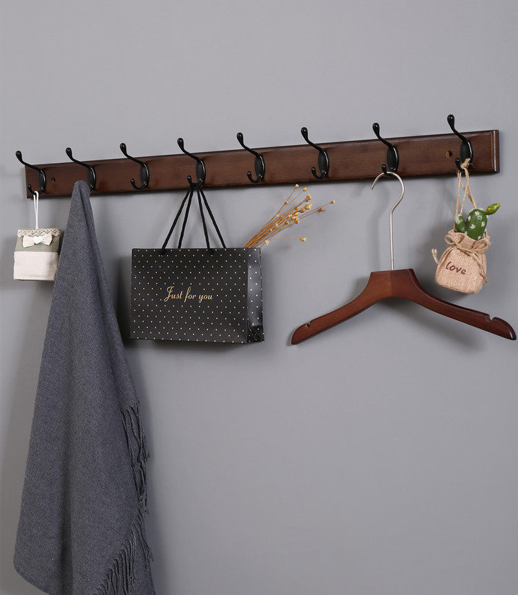 Walnut Color Eight Hooks [Super Load-Bearing, Can Hang Coats)