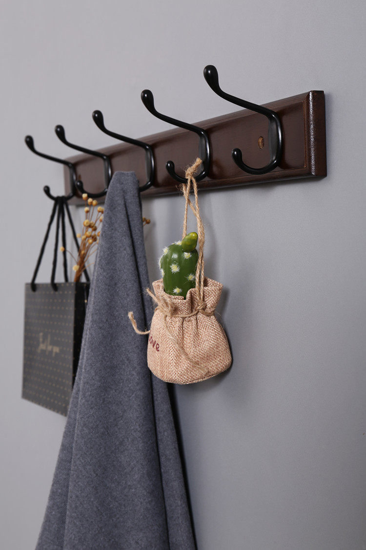 Walnut Color Five Hooks [Super Load-Bearing, Can Hang Coats)