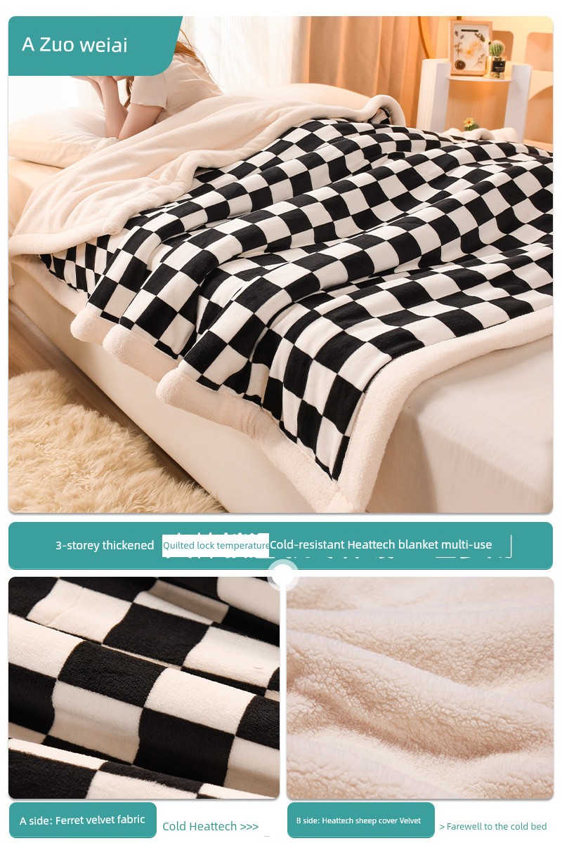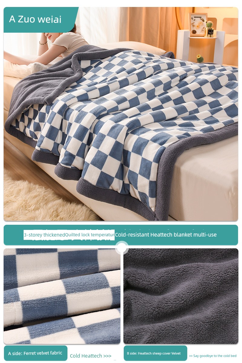 Sheep Velvet - Checkerboard - Blue Gray【✅Category a Maternal and Infant Grade, 3 Layers Thickened, Warm and Cold-Resistant]
