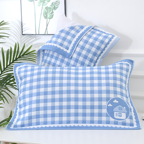 Long-Staple Cotton Plaid Blue Pair