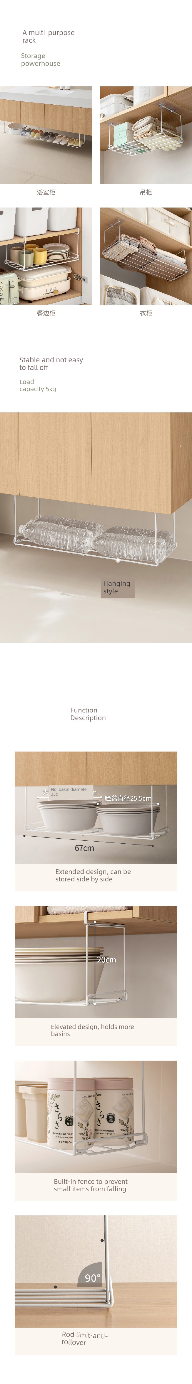 Lanjiaoluo Bathroom Cabinet Hanging Washbasin Storage Rack