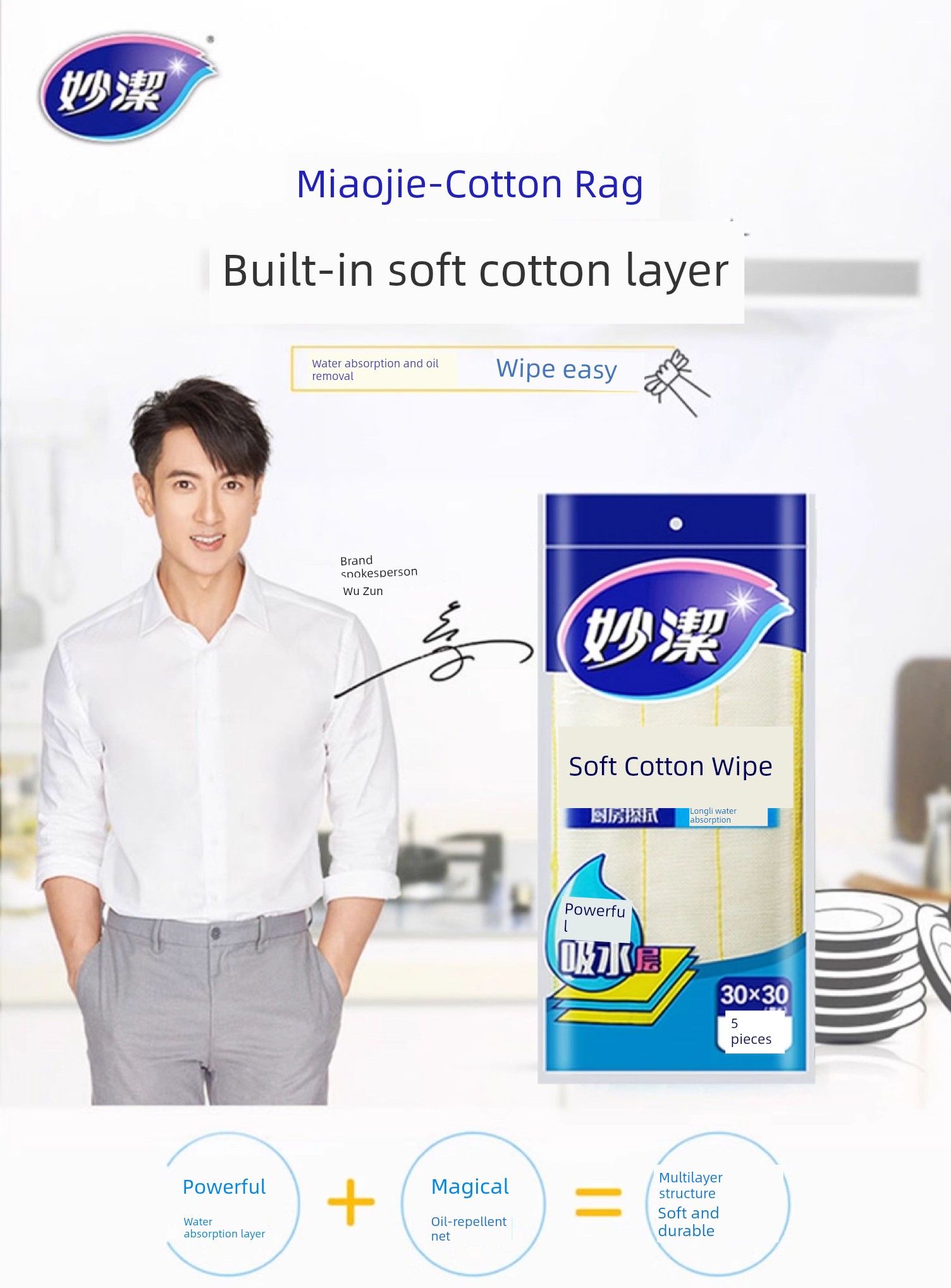 Miaojie Special Oil Removal No Lint Table Cleaning Dishcloth