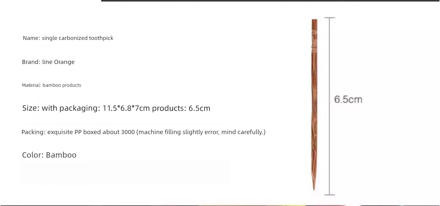 Single-Head Carbonized Fruit Commercial Restaurant Bulk Toothpick