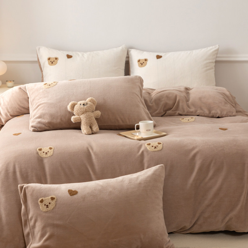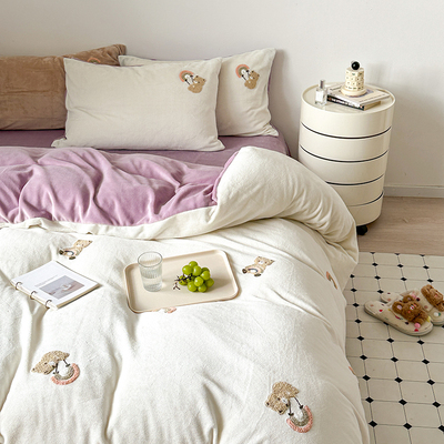 Class a Thickened Warm Towel Embroidered Milk Velvet Four-Piece Set Coral Duvet Cover Three-Piece Winter 1.8m Bed Sheet Supplies