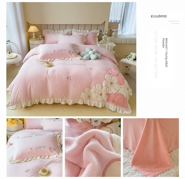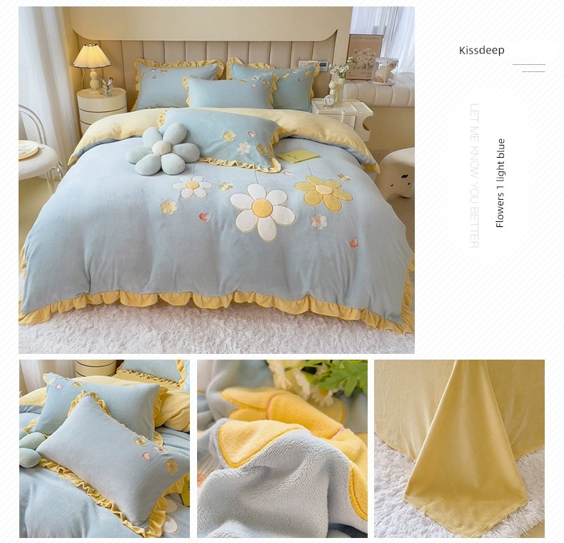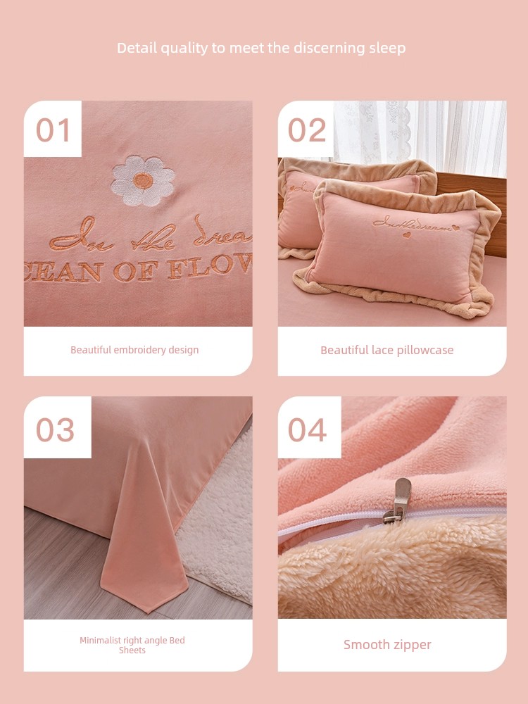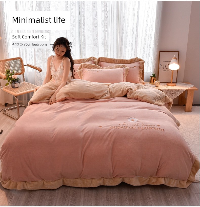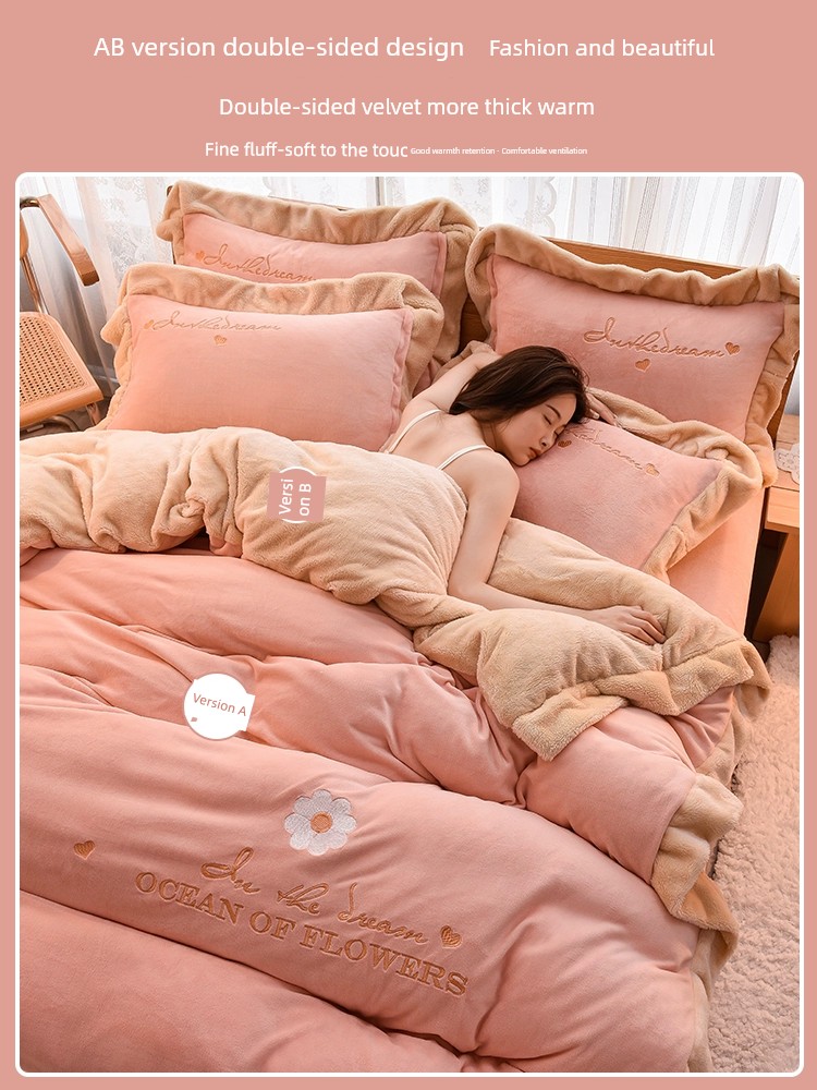 Autumn and Winter Thickened Princess Style Flannel Four-Piece Set