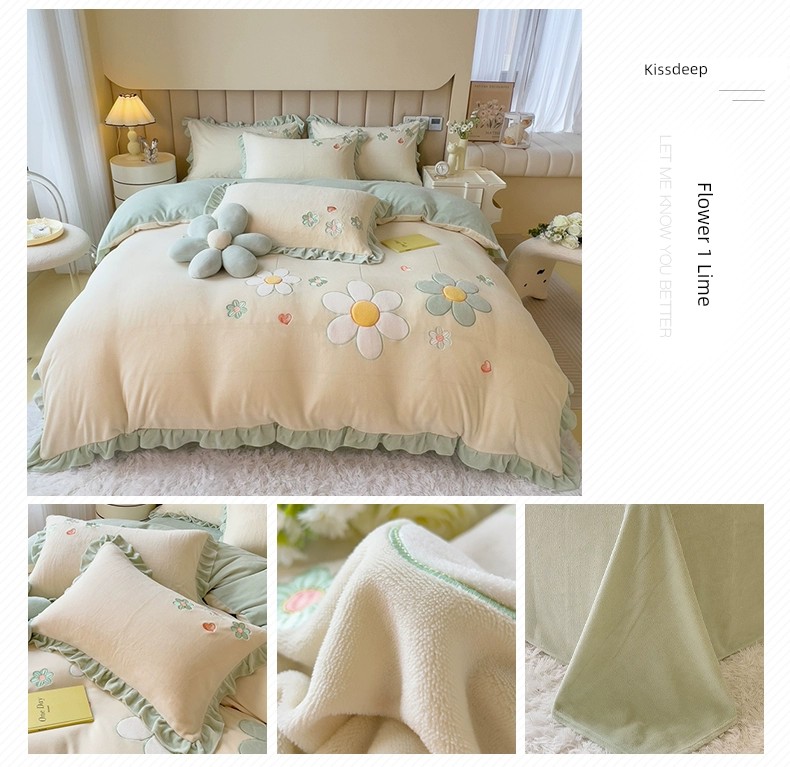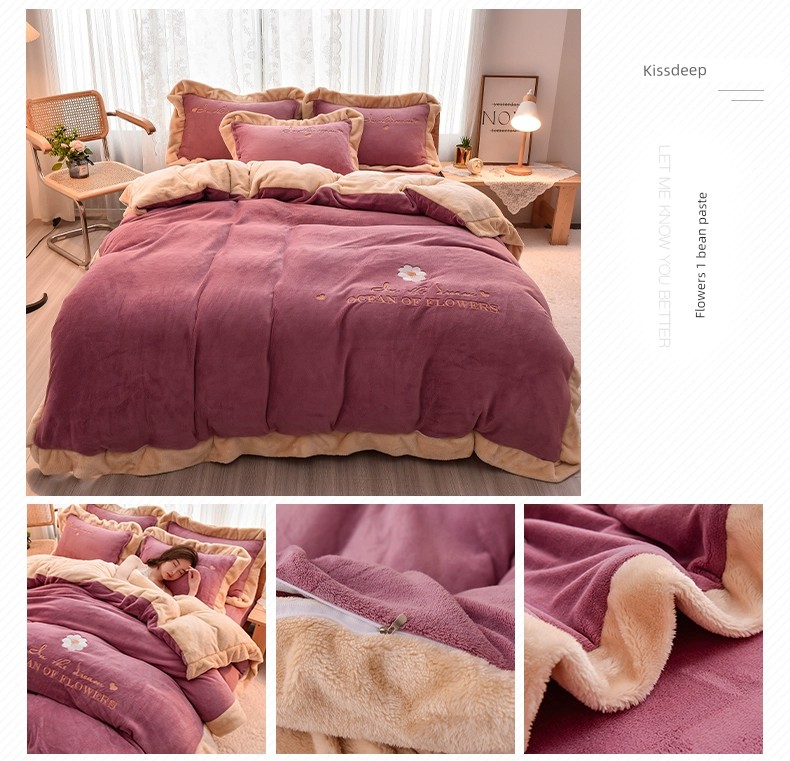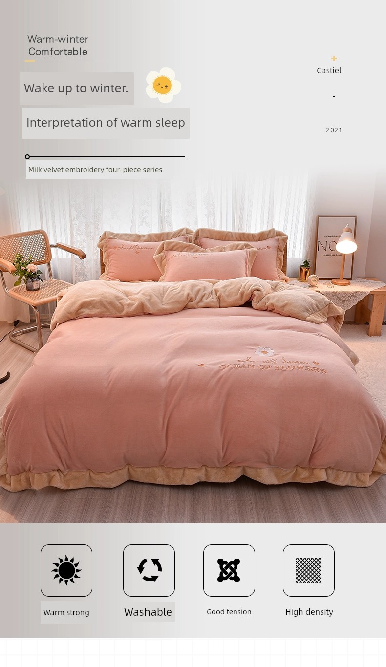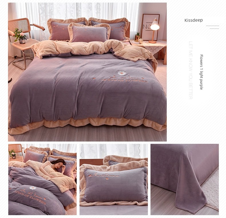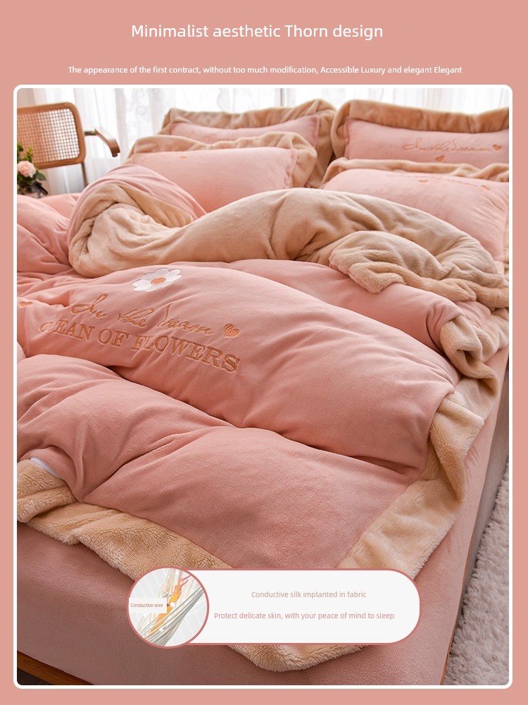 Autumn and Winter Thickened Princess Style Flannel Four-Piece Set