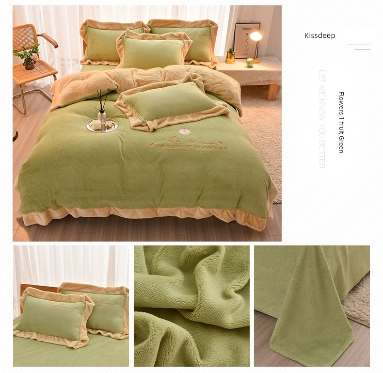 R Velvet Flower Bean Green([New Style for Autumn and Winter, Comfortable for Sleeping Naked])
