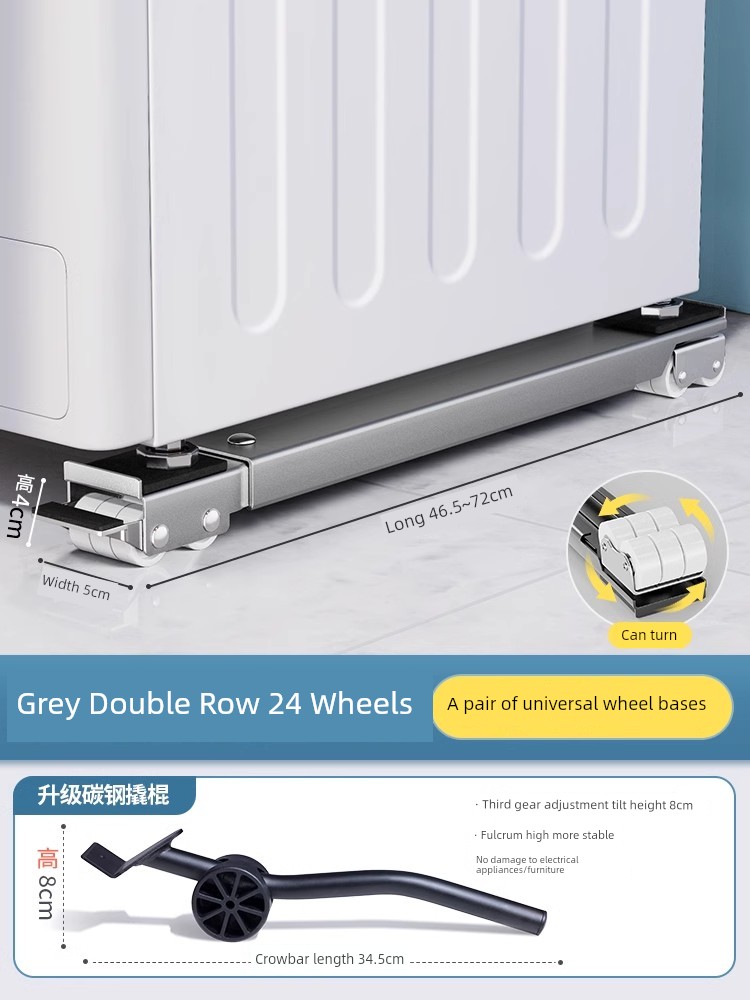Universal Silver Grey 24-Wheel Cart + Pry Bar [Extendable + Brake Design]