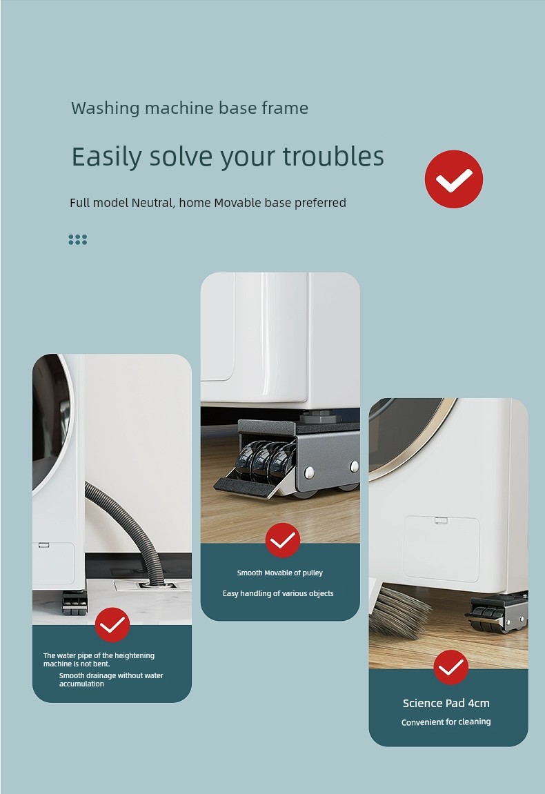 【Mobile & Stable】4 Double-Wheel Casters with Dual Brakes + 8 Support Legs + Dual Anti-Vibration Locks