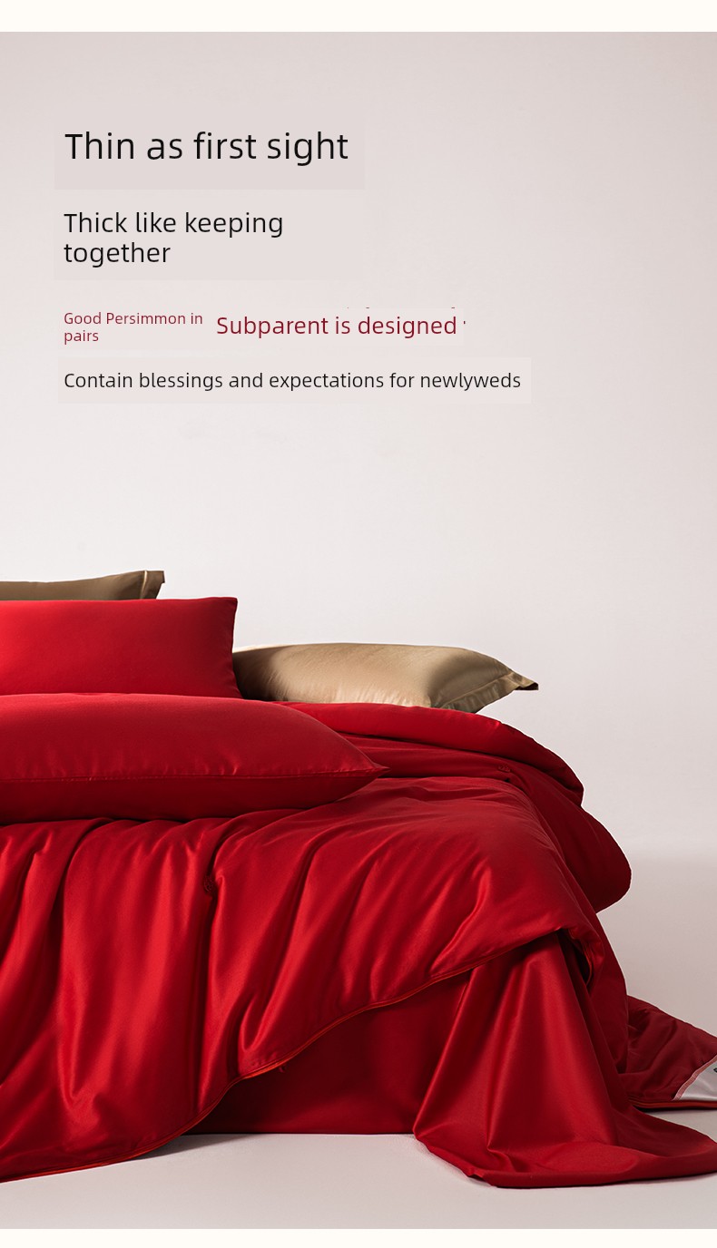 [Hot Seller] Dawn Red 1000g + 2000g Silk Net Weight [Mother-And-Child Quilt] Free Wedding Four-Piece Set