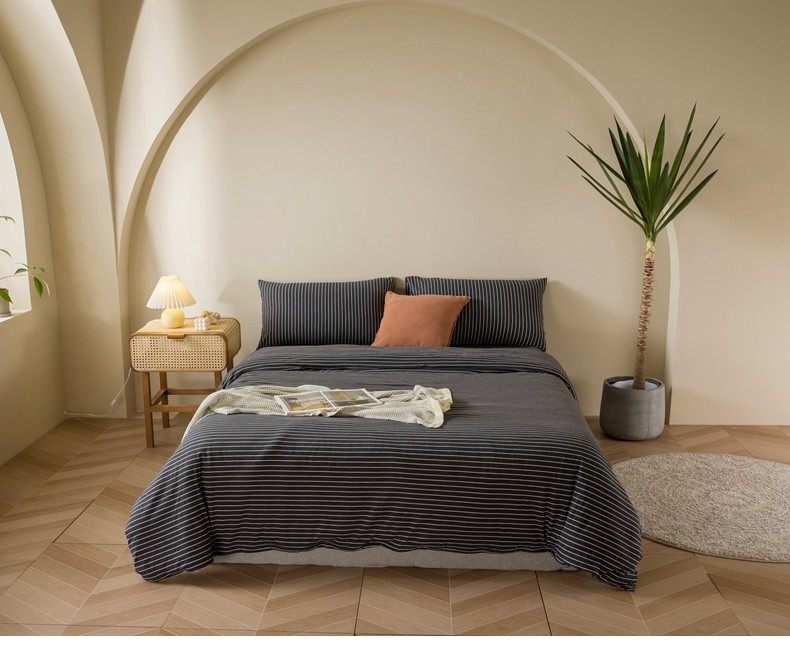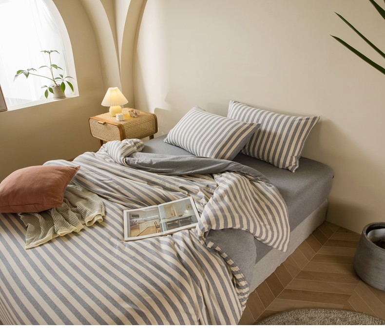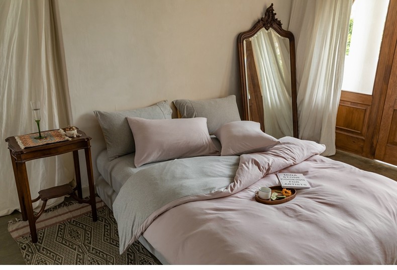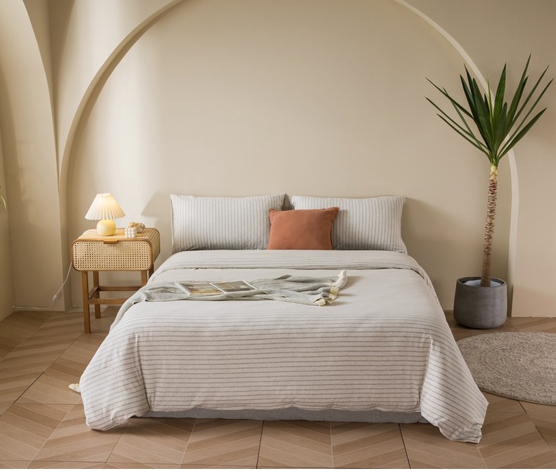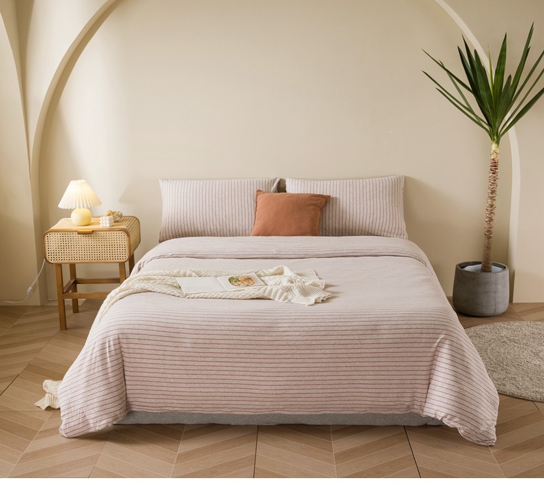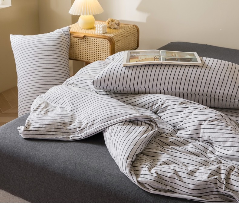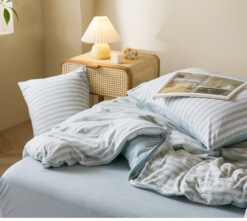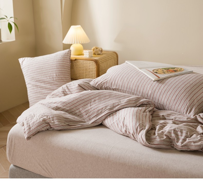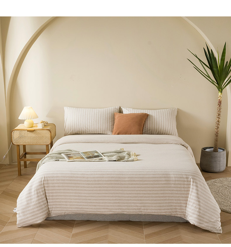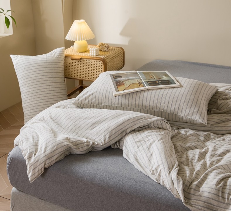 Muji Bedding Four-Piece Set, Pure Cotton Knitted Cotton, Pure Cotton Jersey, Suitable for Sleeping Naked, Bed Sheet, Duvet Cover, Bedding Set Three