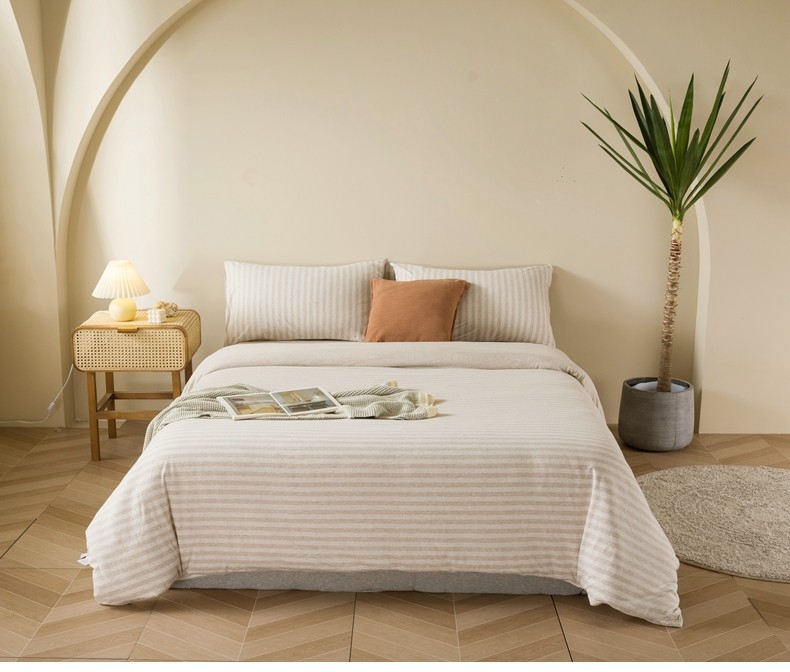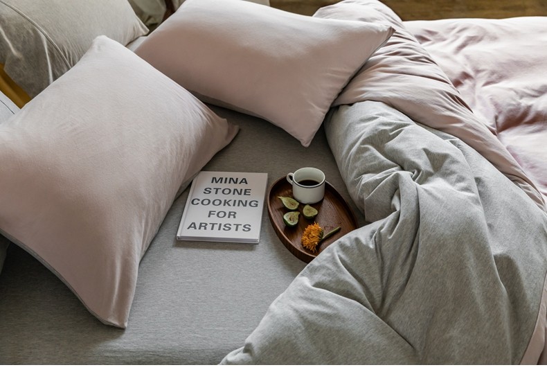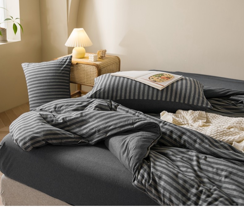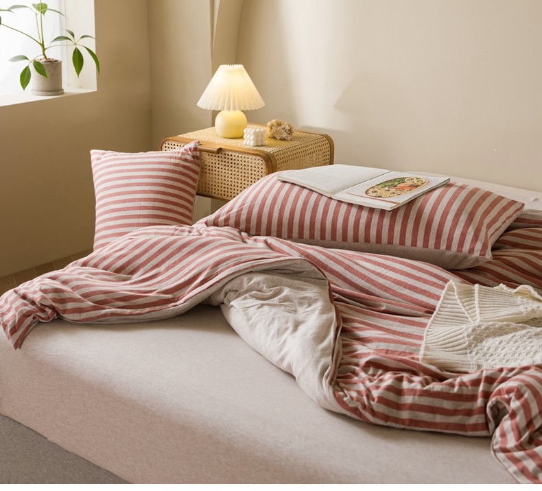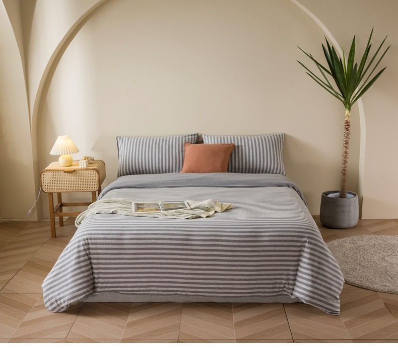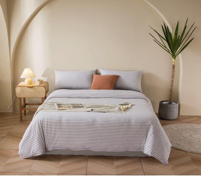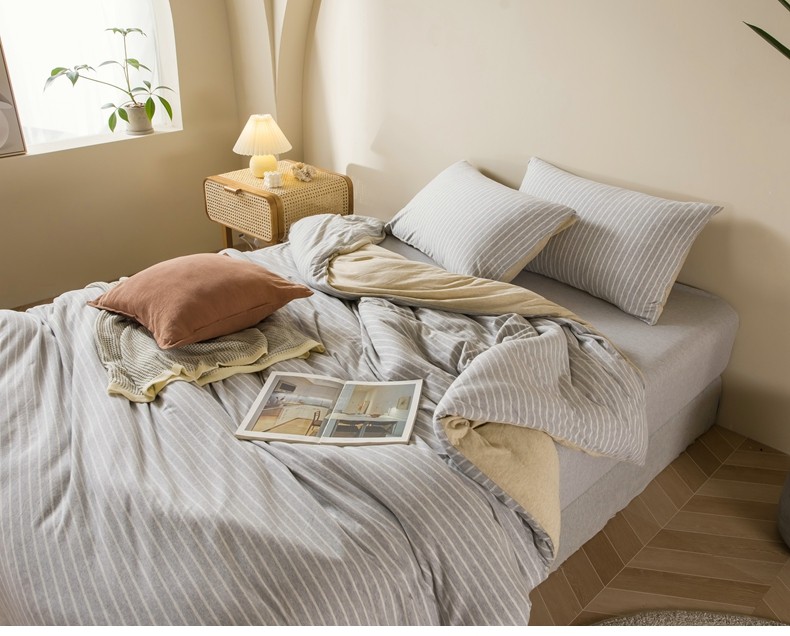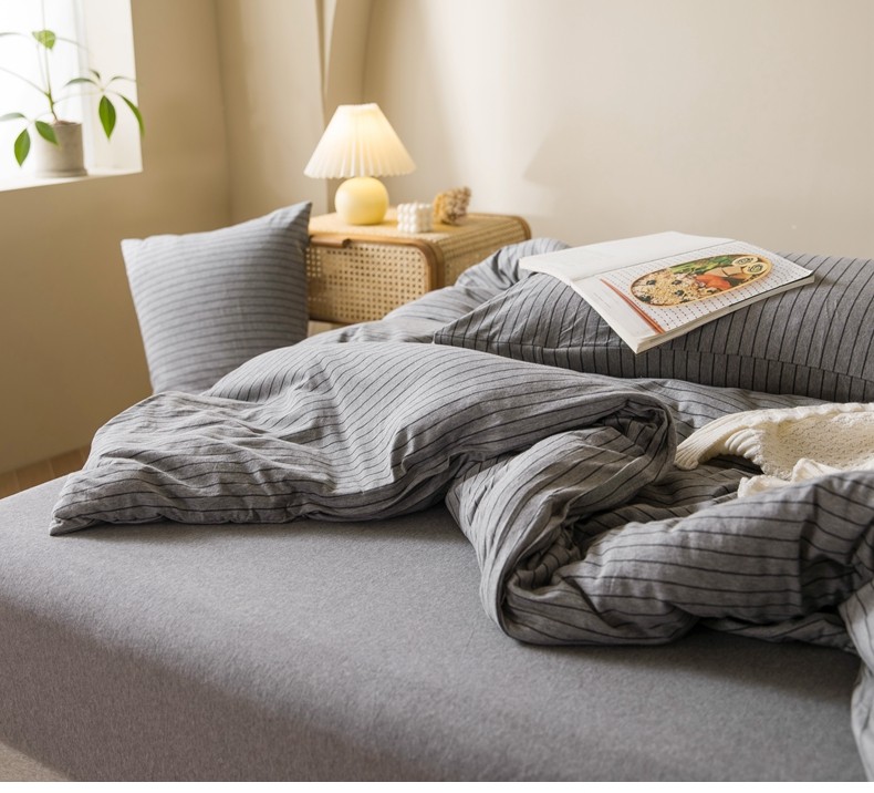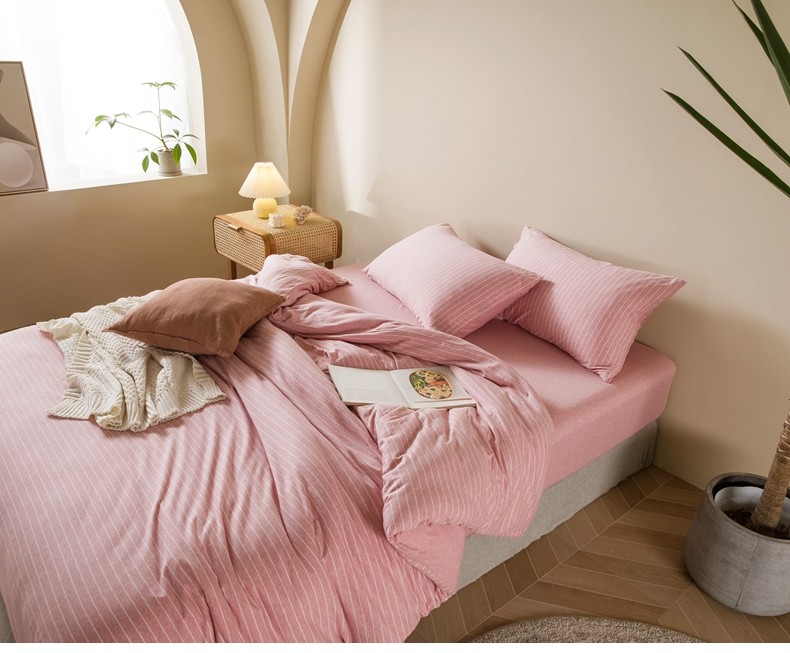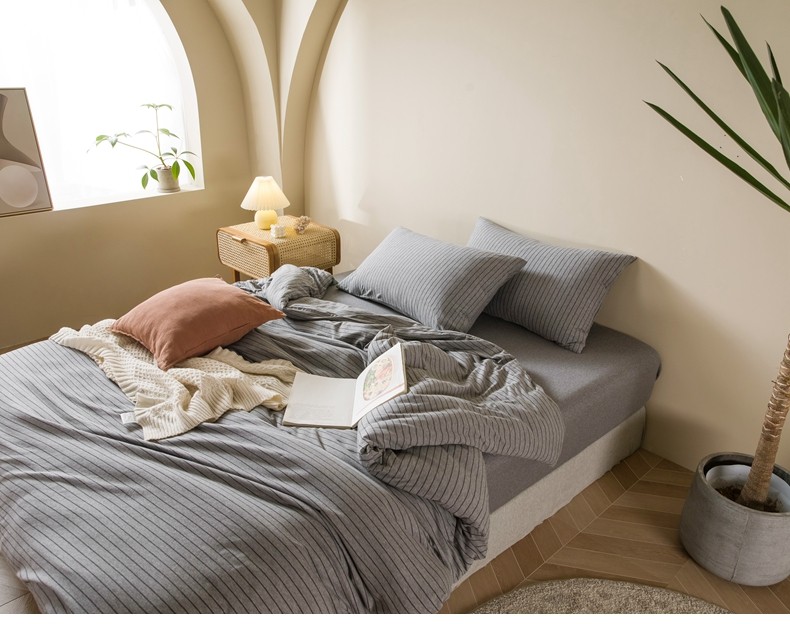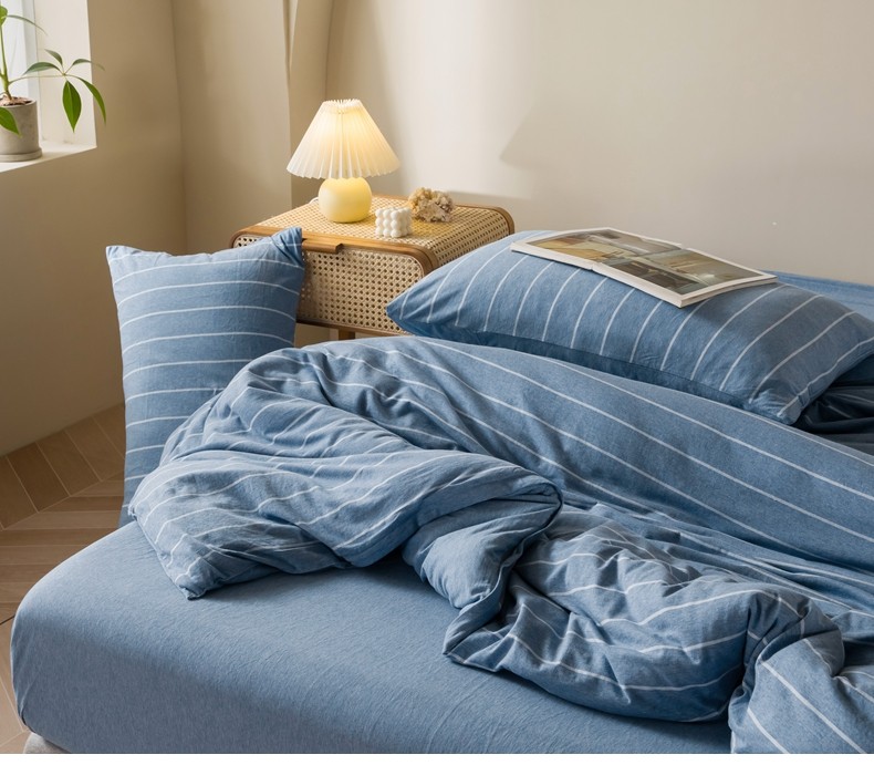 Muji Bedding Four-Piece Set, Pure Cotton Knitted Cotton, Pure Cotton Jersey, Suitable for Sleeping Naked, Bed Sheet, Duvet Cover, Bedding Set Three