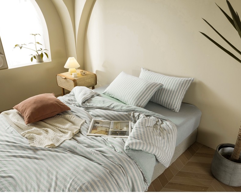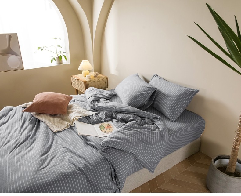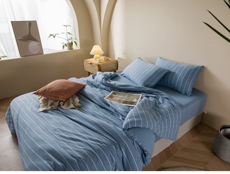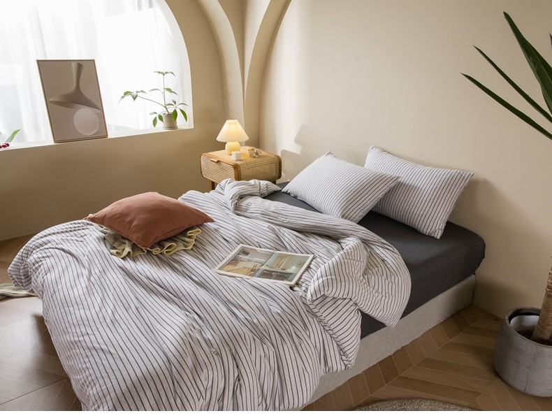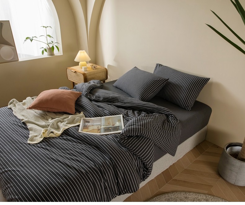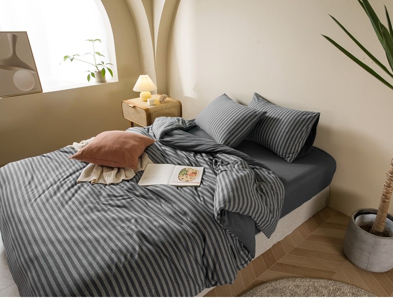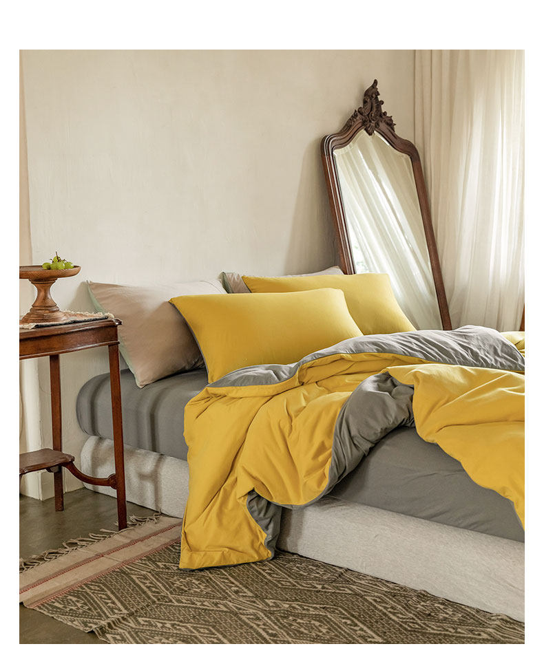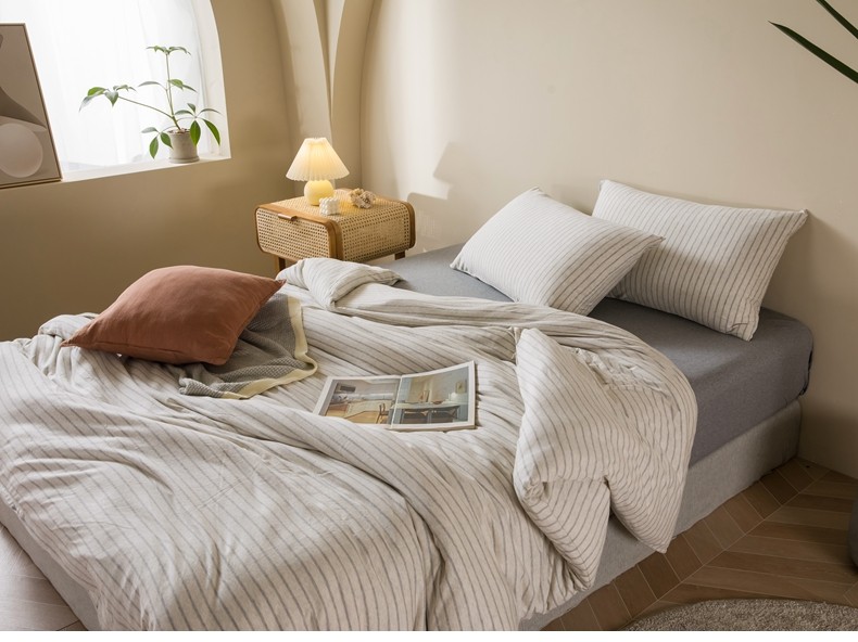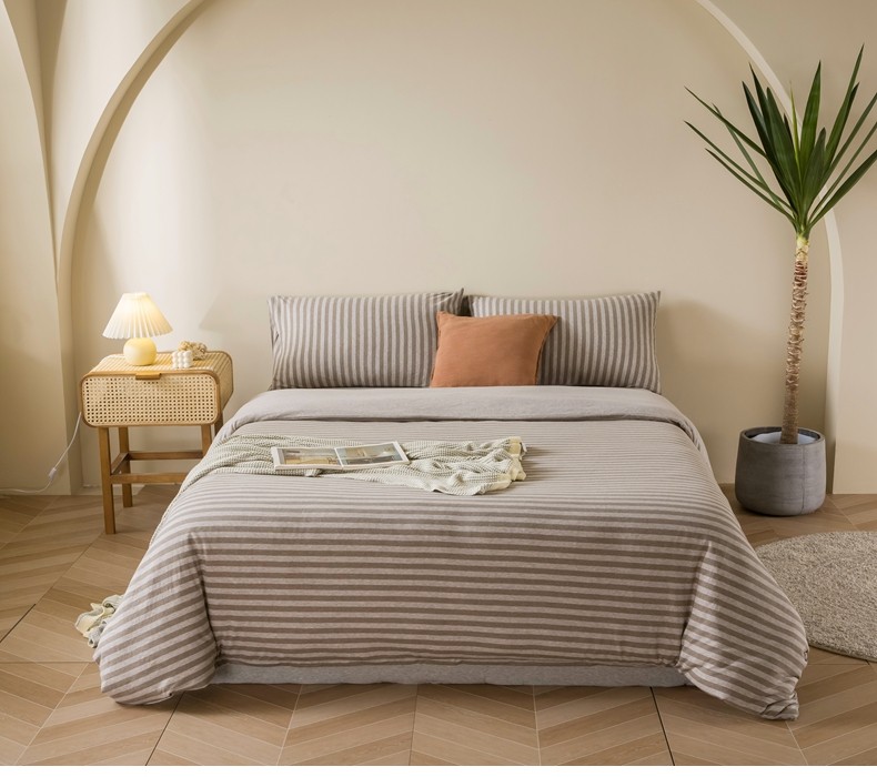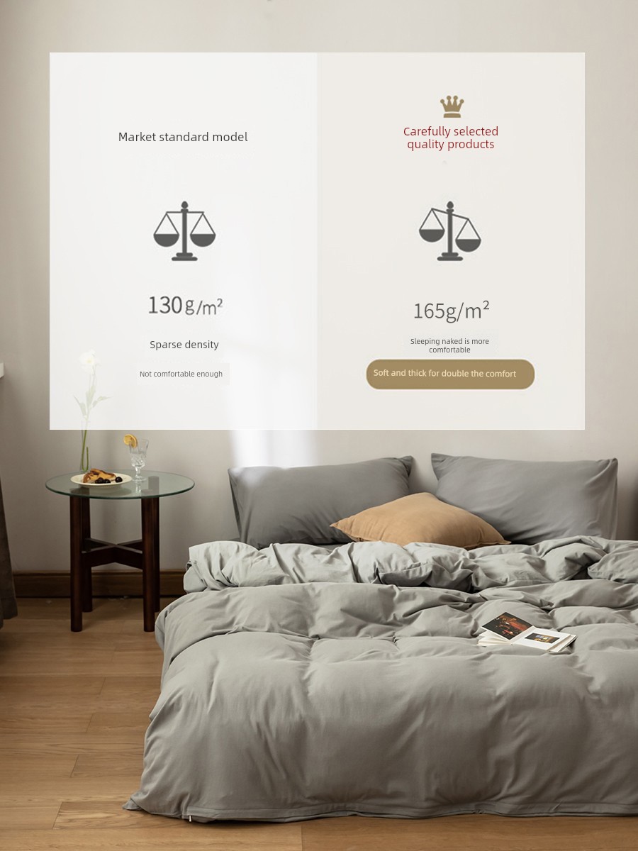 Muji Bedding Four-Piece Set, Pure Cotton Knitted Cotton, Pure Cotton Jersey, Suitable for Sleeping Naked, Bed Sheet, Duvet Cover, Bedding Set Three