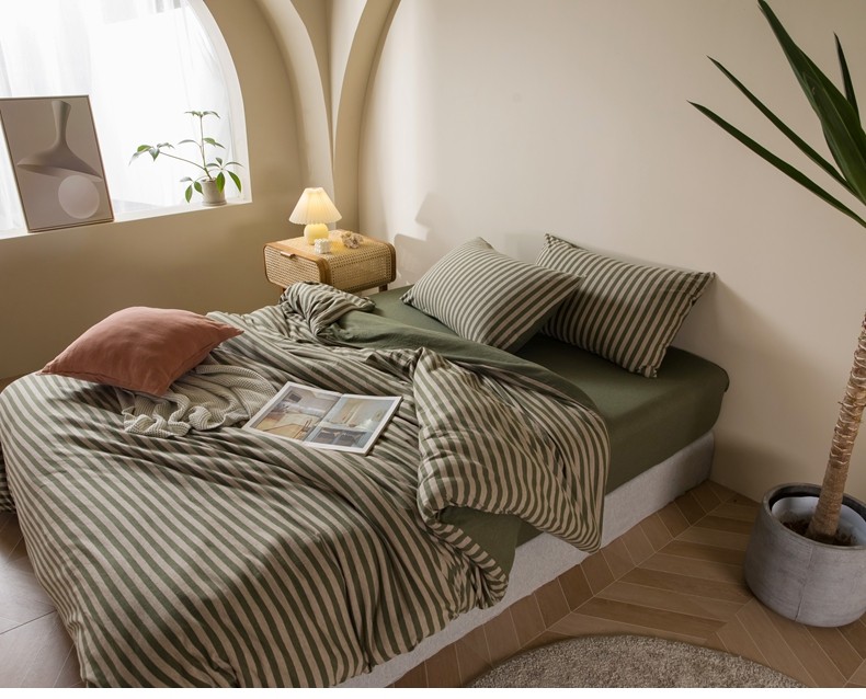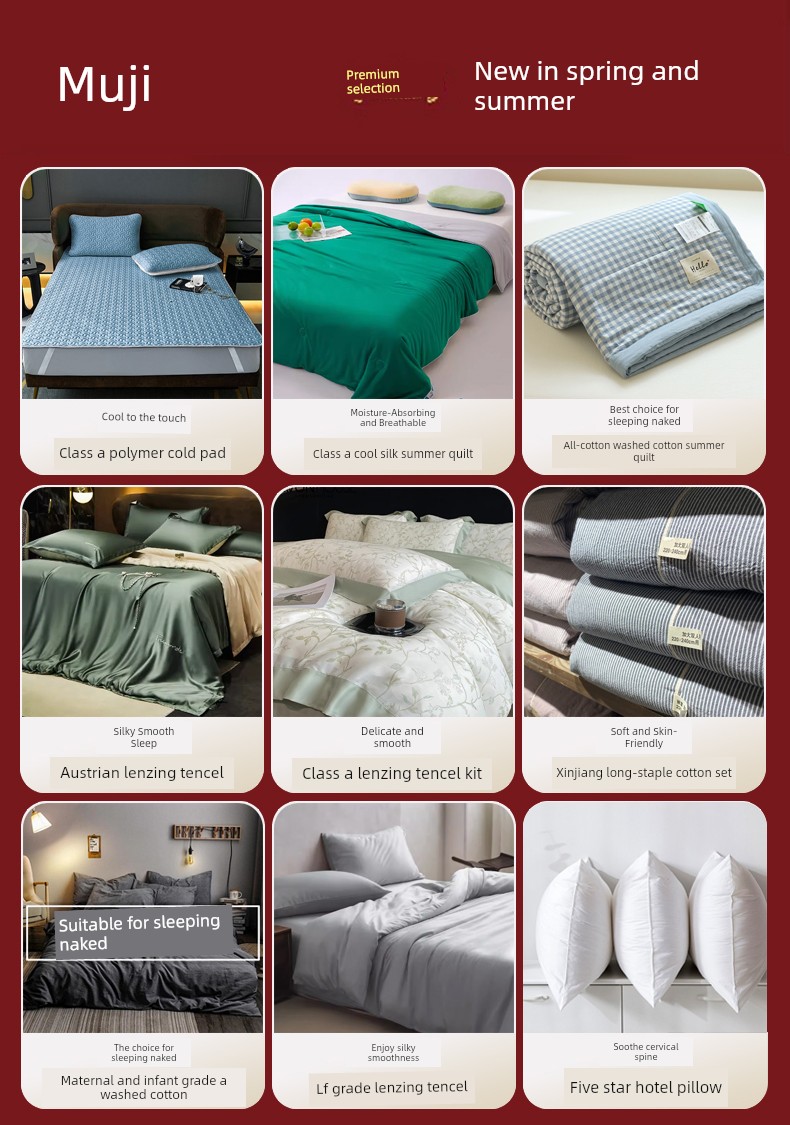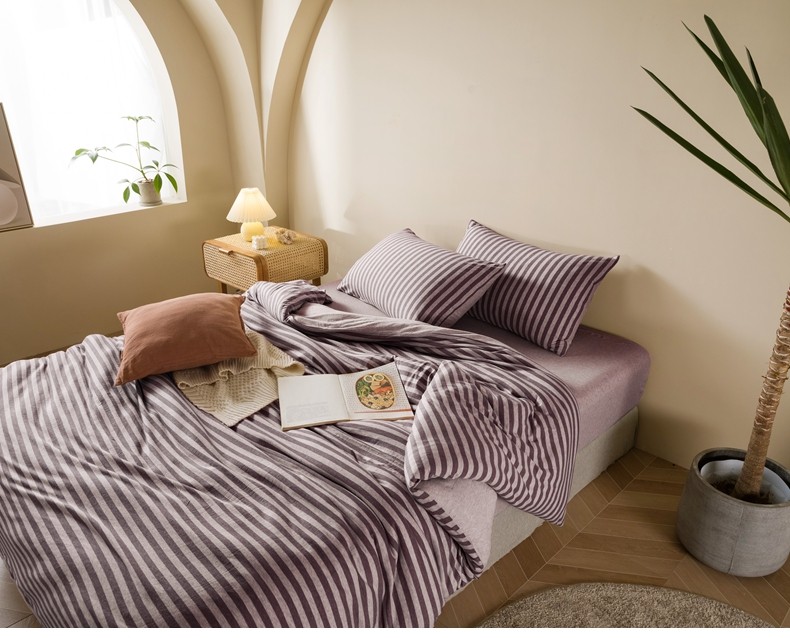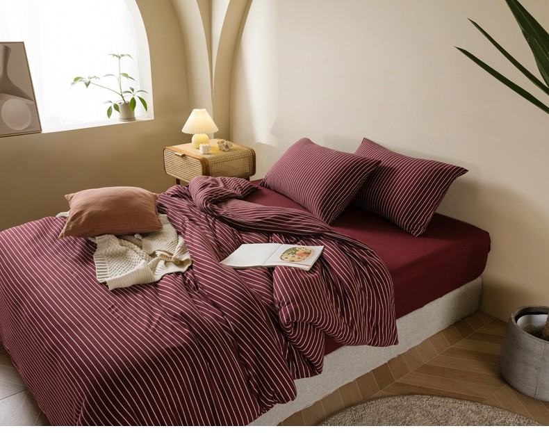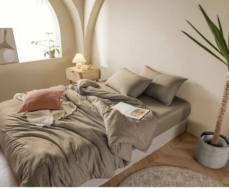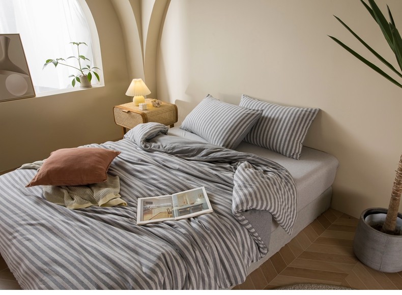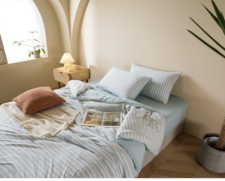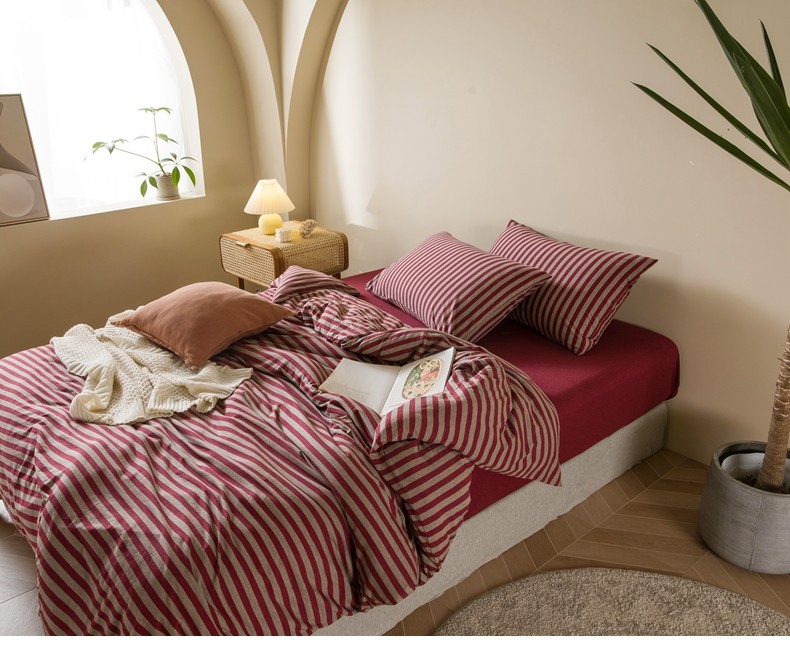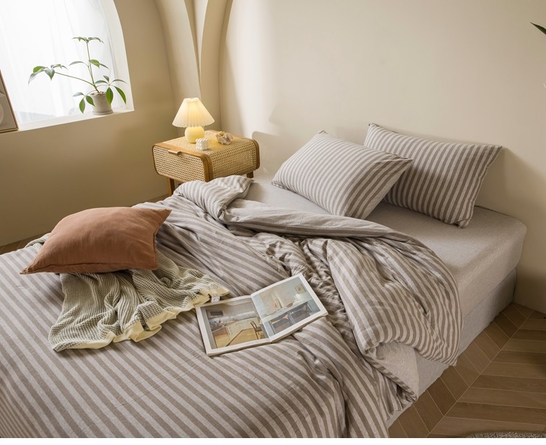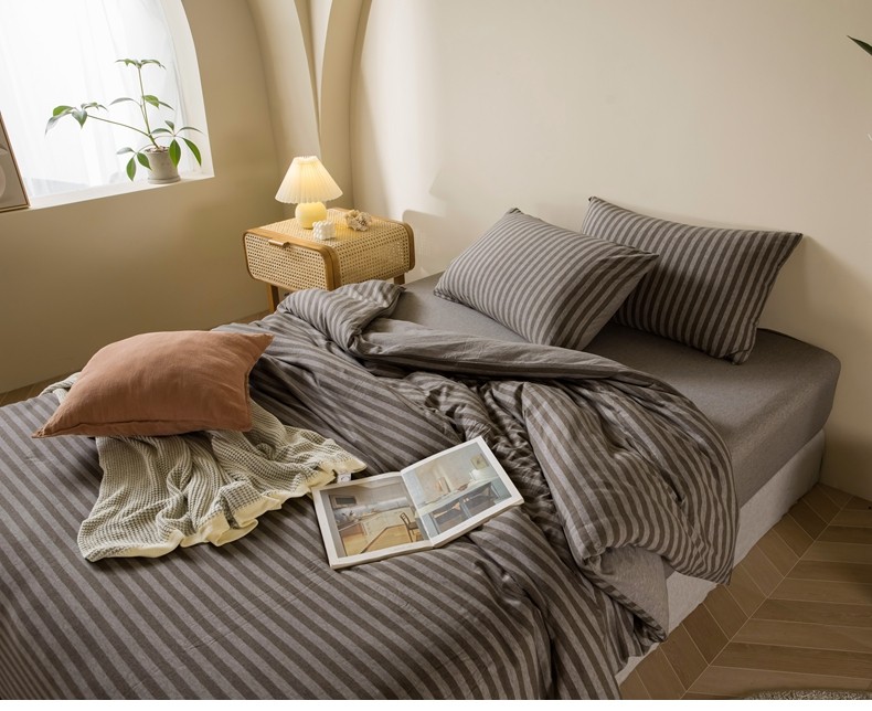 Muji Bedding Four-Piece Set, Pure Cotton Knitted Cotton, Pure Cotton Jersey, Suitable for Sleeping Naked, Bed Sheet, Duvet Cover, Bedding Set Three