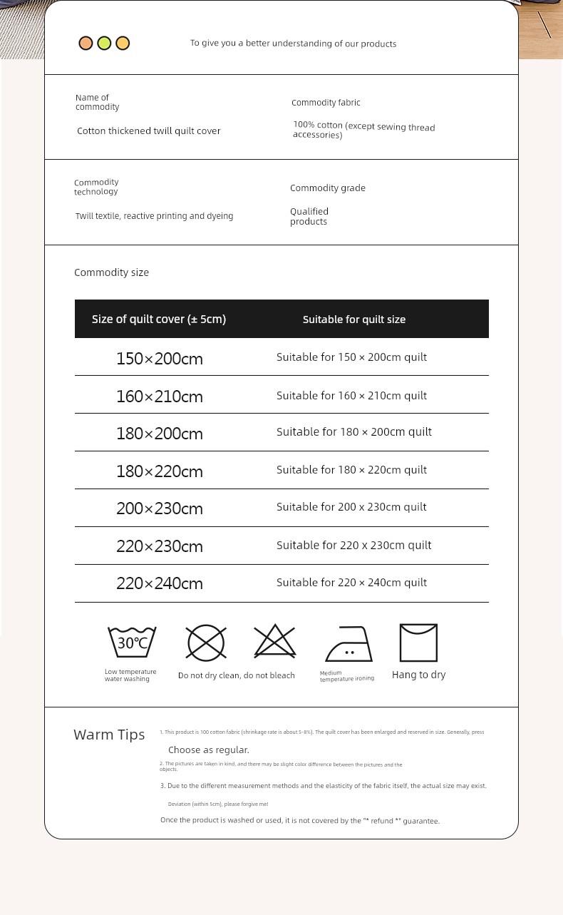 220X230Cm Quilt Cover + 1 Pair of Pillowcases of the Same Style