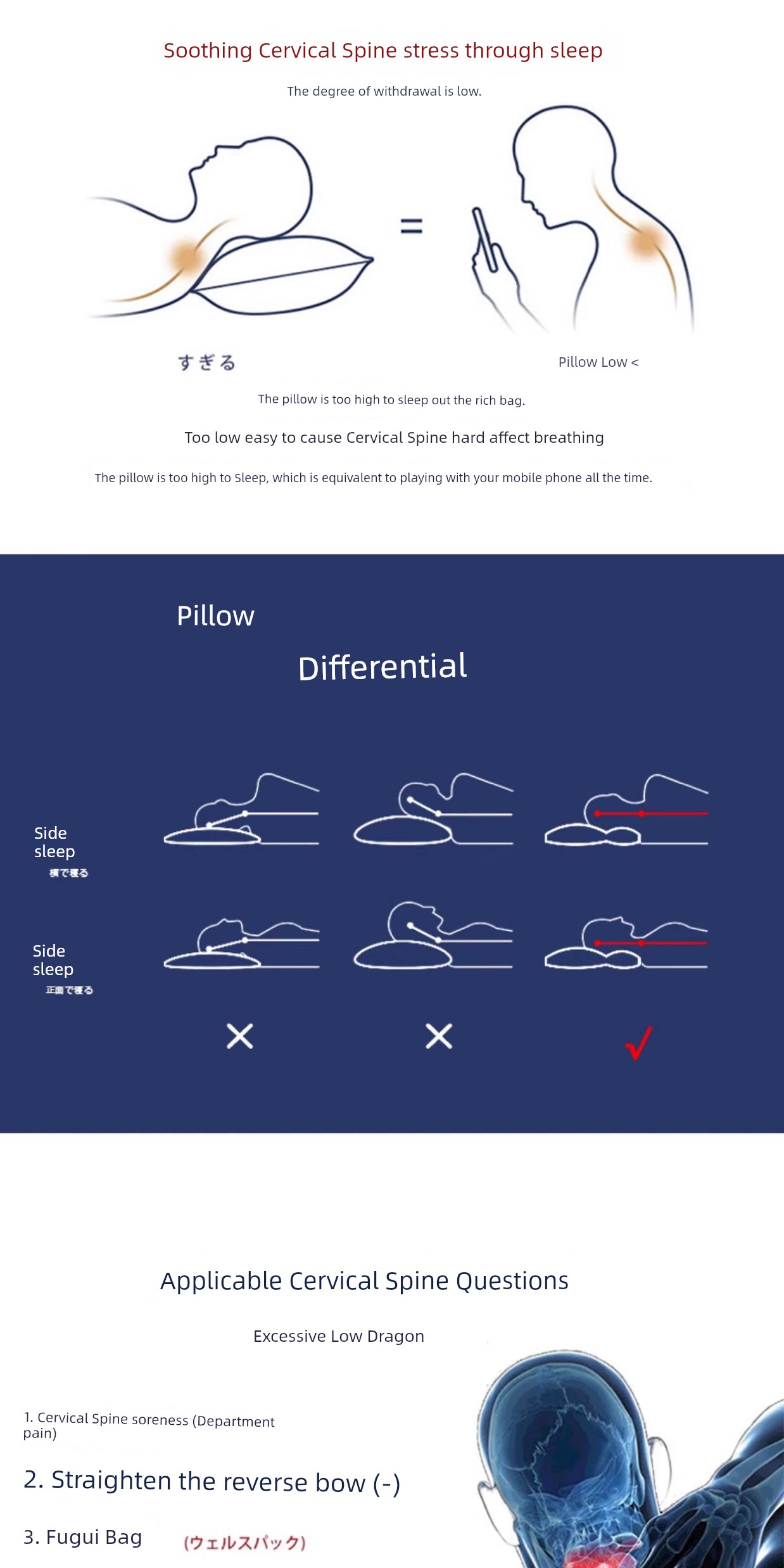 Grace Massage Partition Improve Sleeping Neck Pillow Reverse Bow