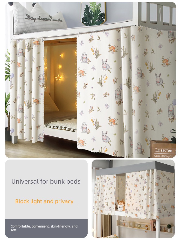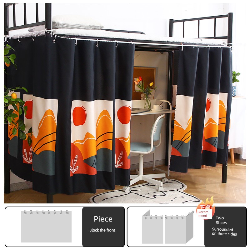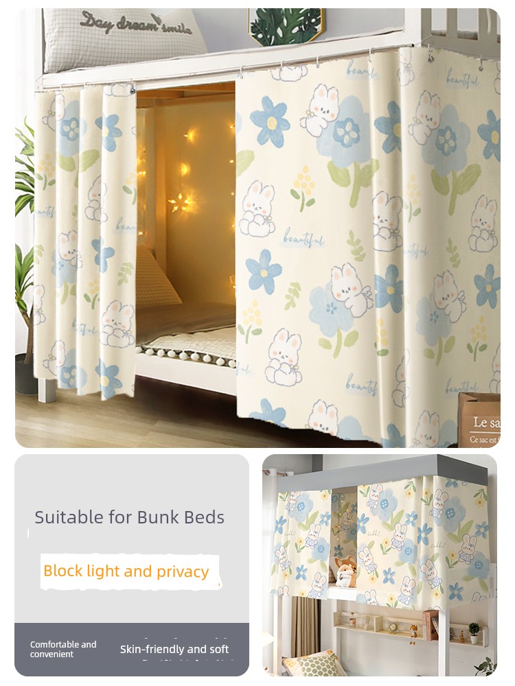 Bed Curtain Student Light Blocking Upper Berth Upper and Lower Bunk Dormitory Curtain Bedroom Curtain Japanese Style University Young Adult Height-Adjustable Bed Male