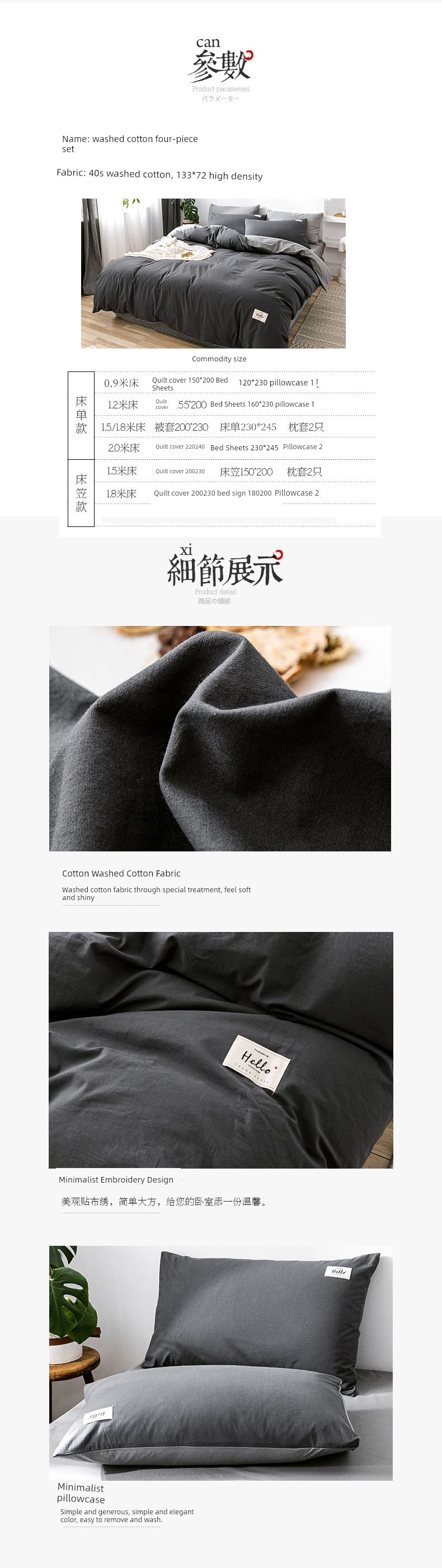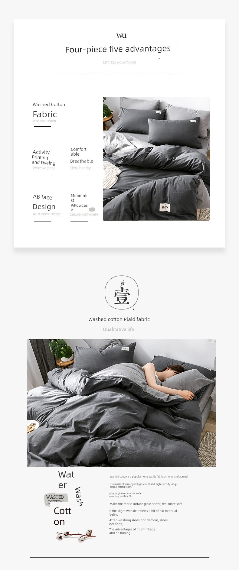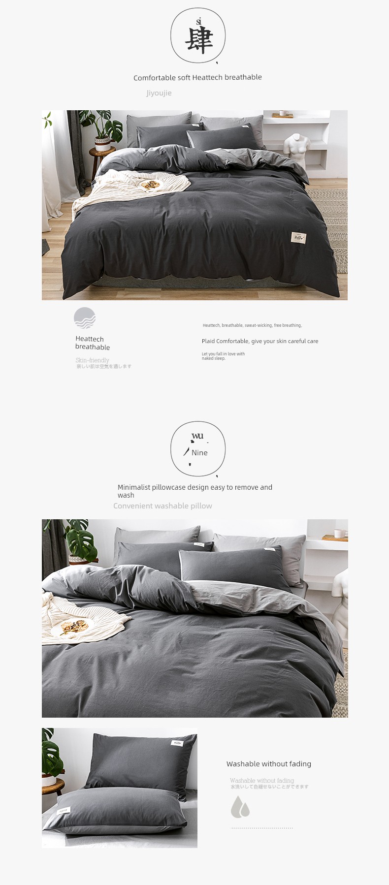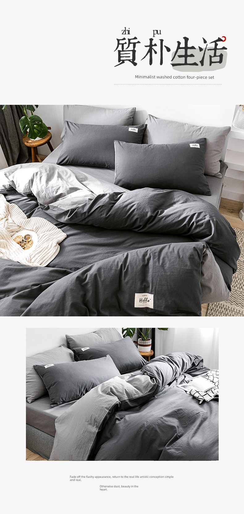 Dark Gray + Light Gray [Upgraded Thickened Fabric 100% Cotton Washed Cotton]