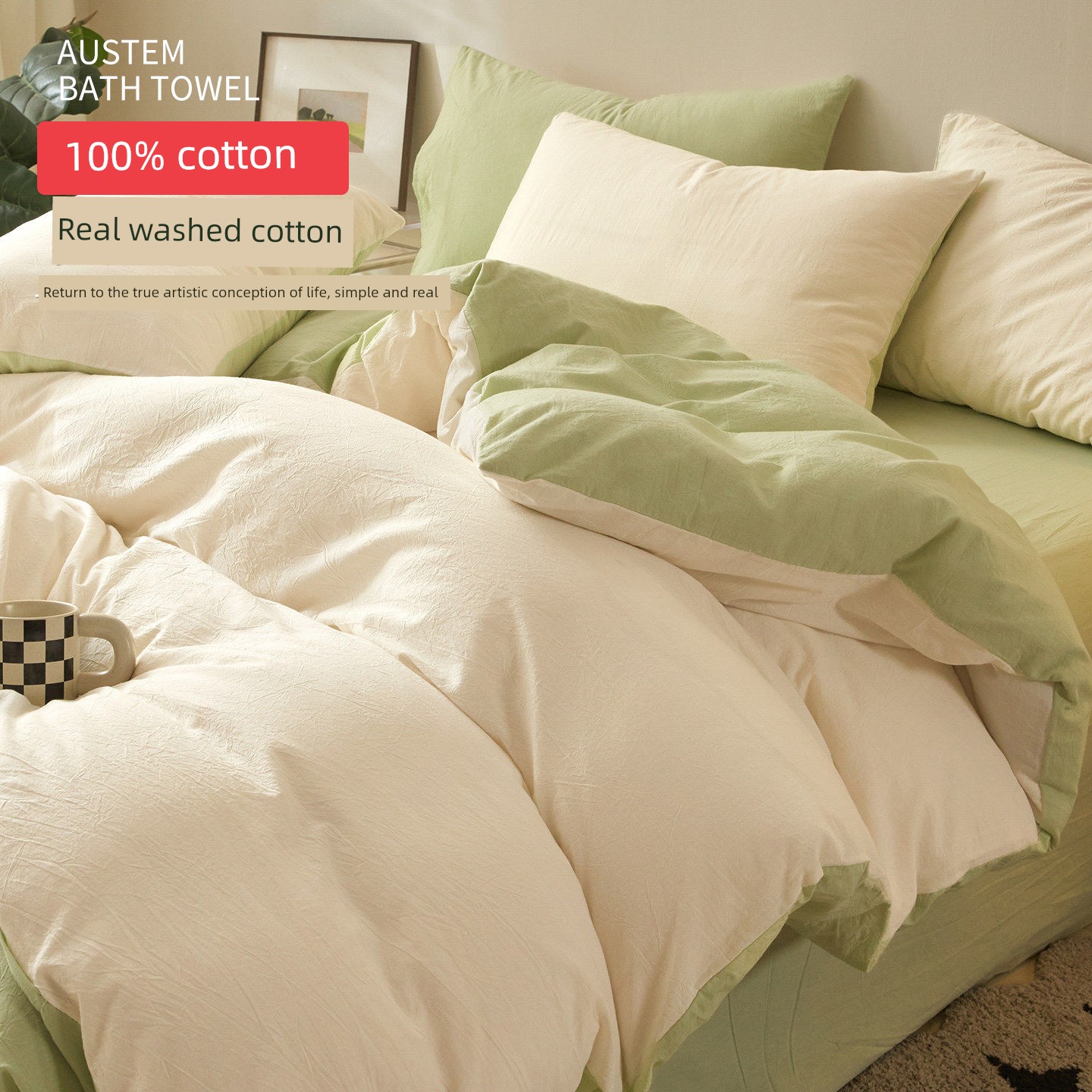 Milk White + Bean Green [Upgraded 100% Washed Cotton - Authenticity Guaranteed, or 10X Refund]