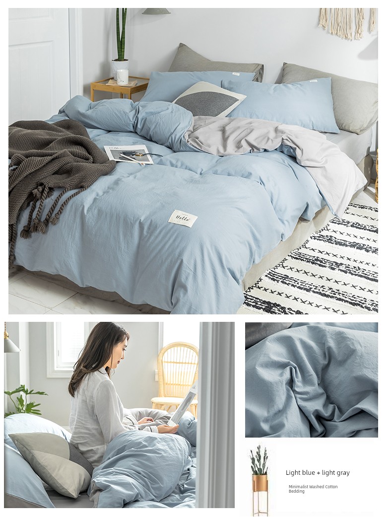 Light Blue + Light Gray [Upgraded Thickened Fabric 100% Cotton Washed Cotton]