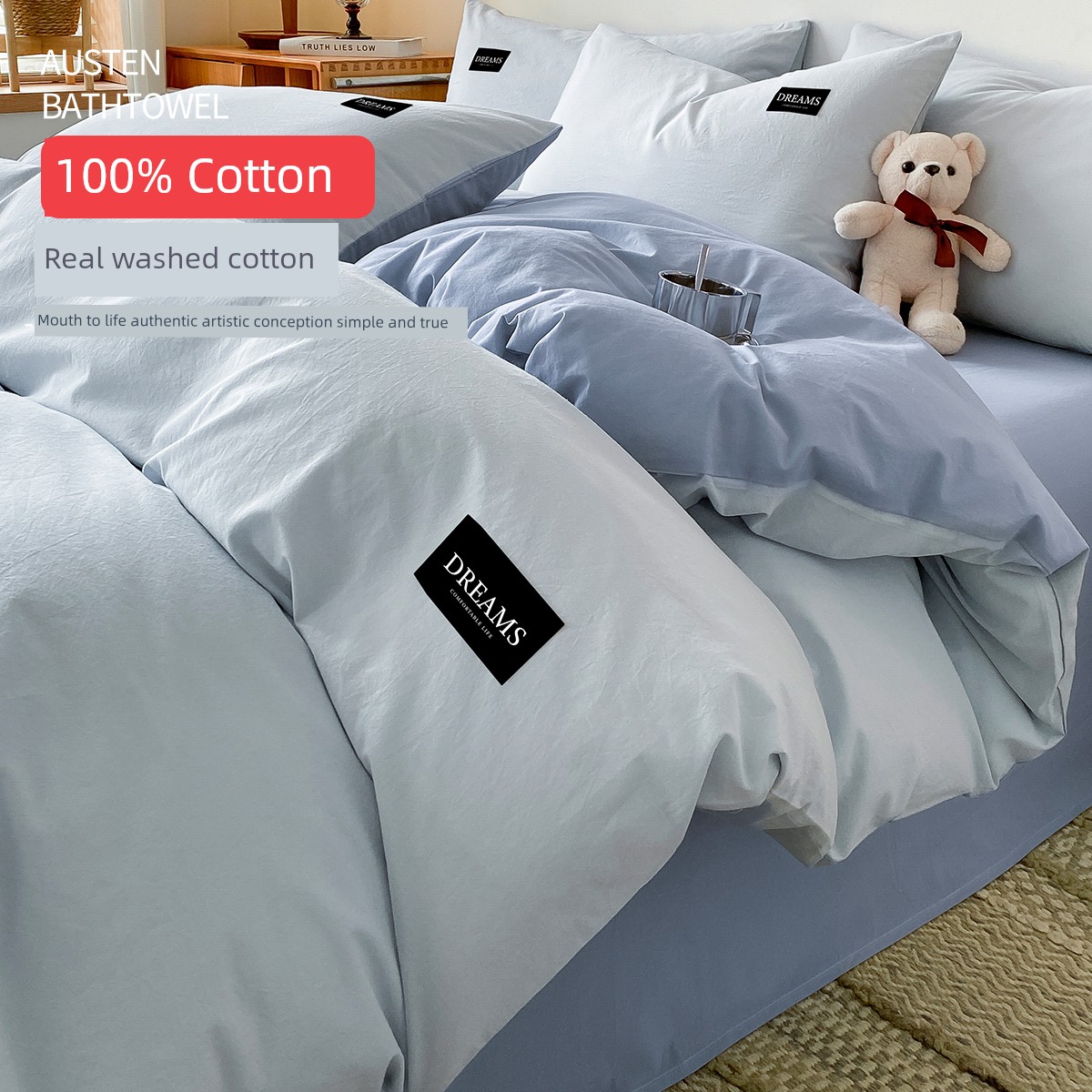 Bentley Blue-Milk Tea [Upgraded Thickened Fabric 100% Cotton Washed Cotton]