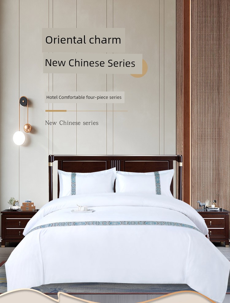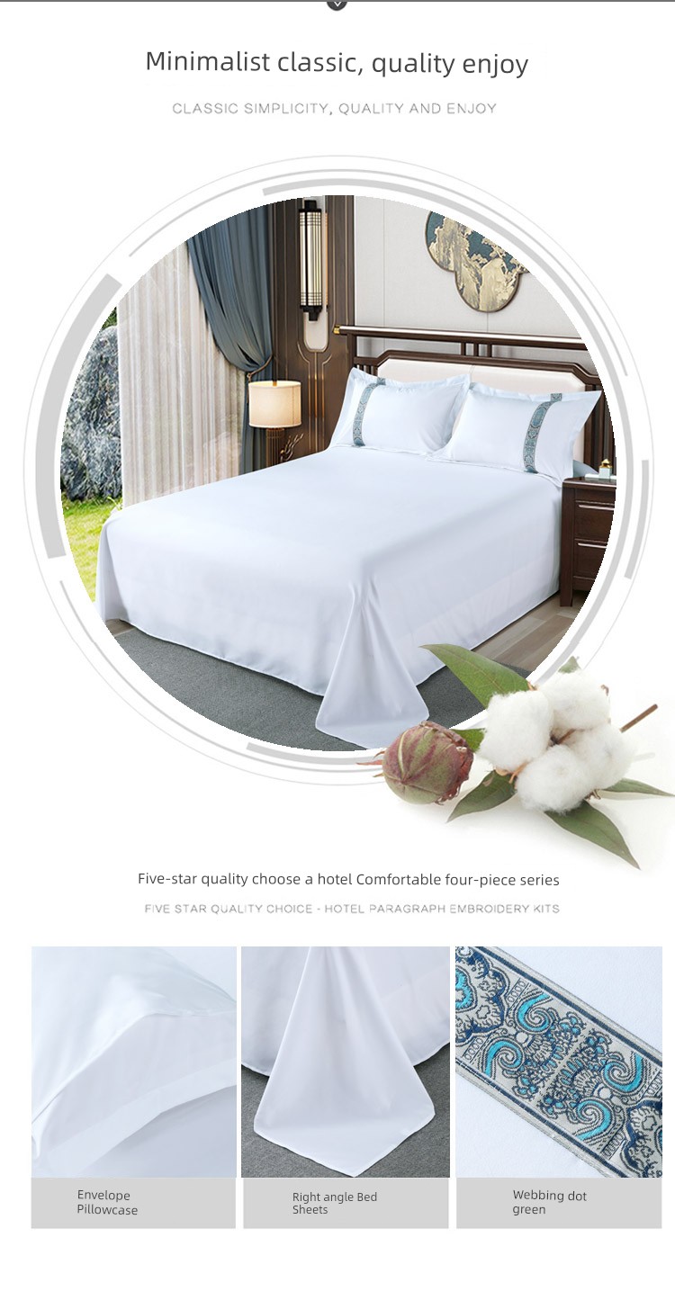 Hotel Cloth Product Bedding Four-Piece Bed & Breakfast Three-Piece Brushed Single Double Pure White Single Duvet Cover Minimalist