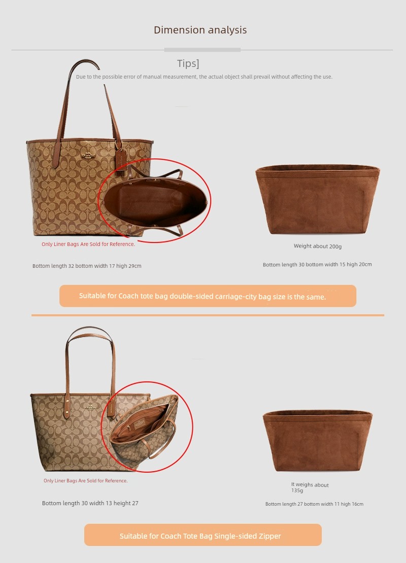 Suitable for Coach Coach Central Tote Bag Liner Bag Mummy Bag Middle Bag Cosmetics Bag Support Lining Inner Bag