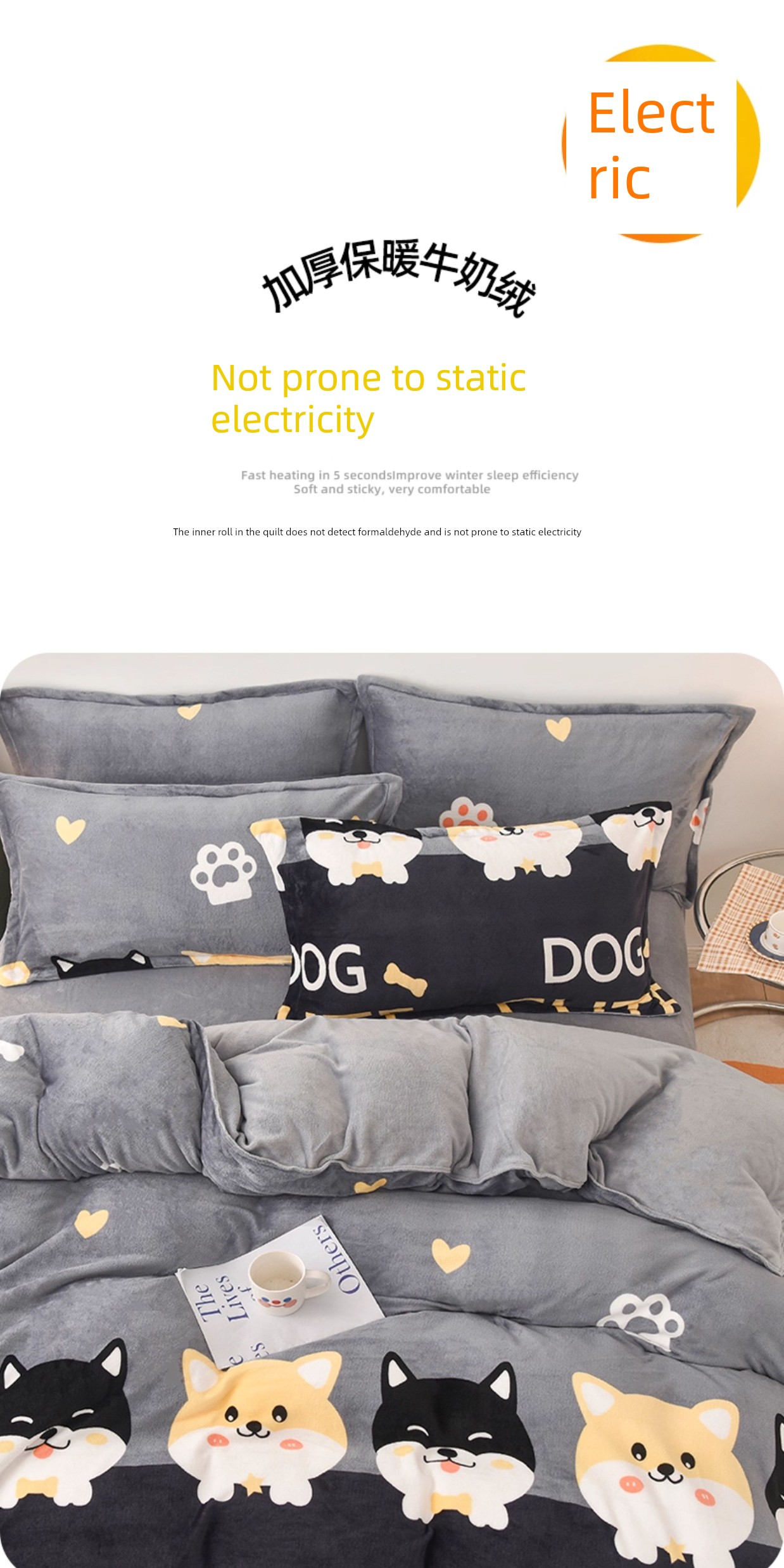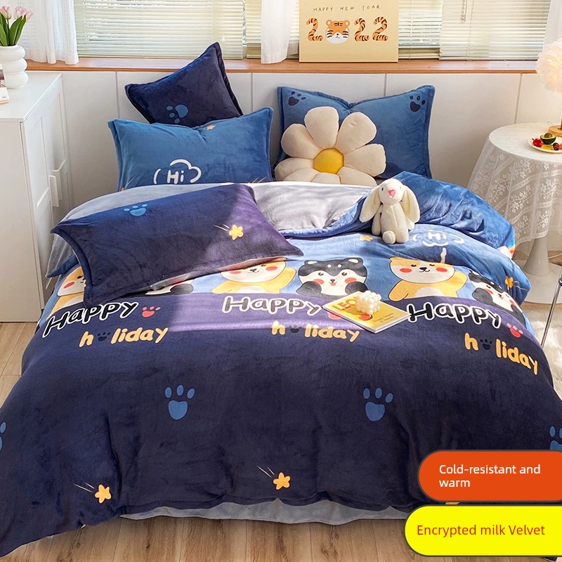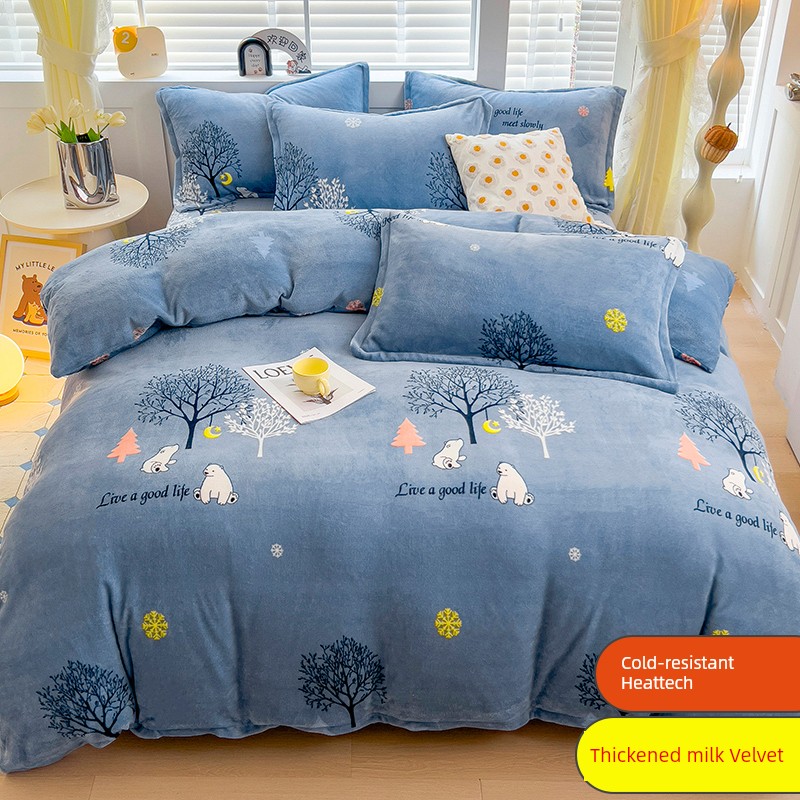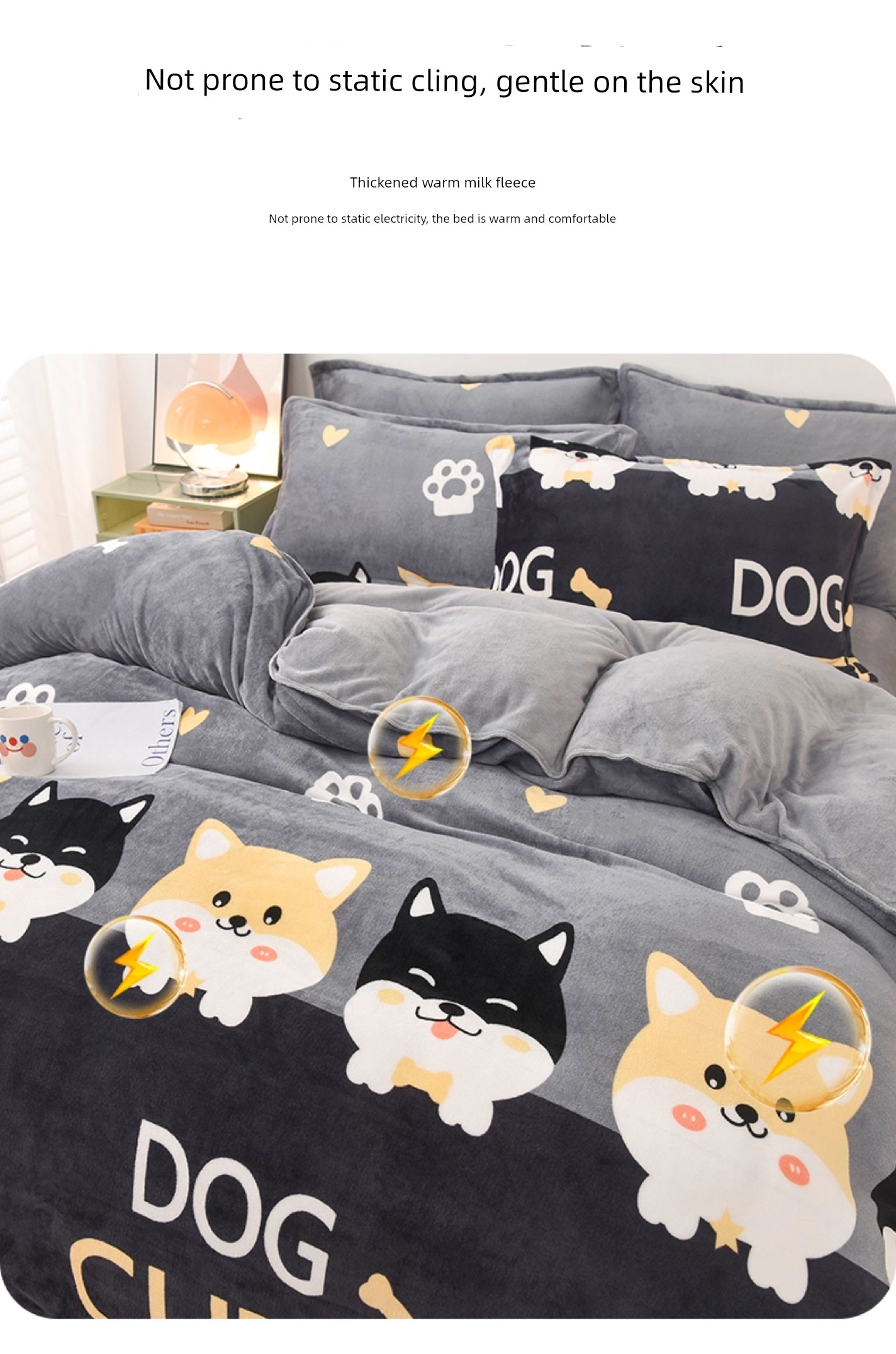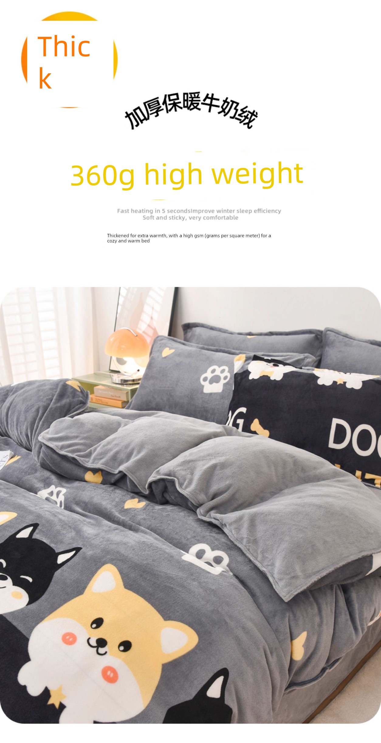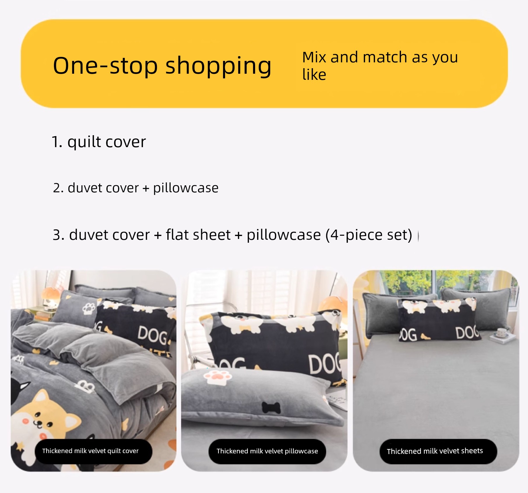 Winter Milk Fiber Duvet Cover One-Piece Coral Fleece Duvet Cover Fleece-lined Thickened Double-Sided Fleece 150 Single 180x200x230