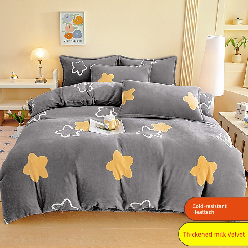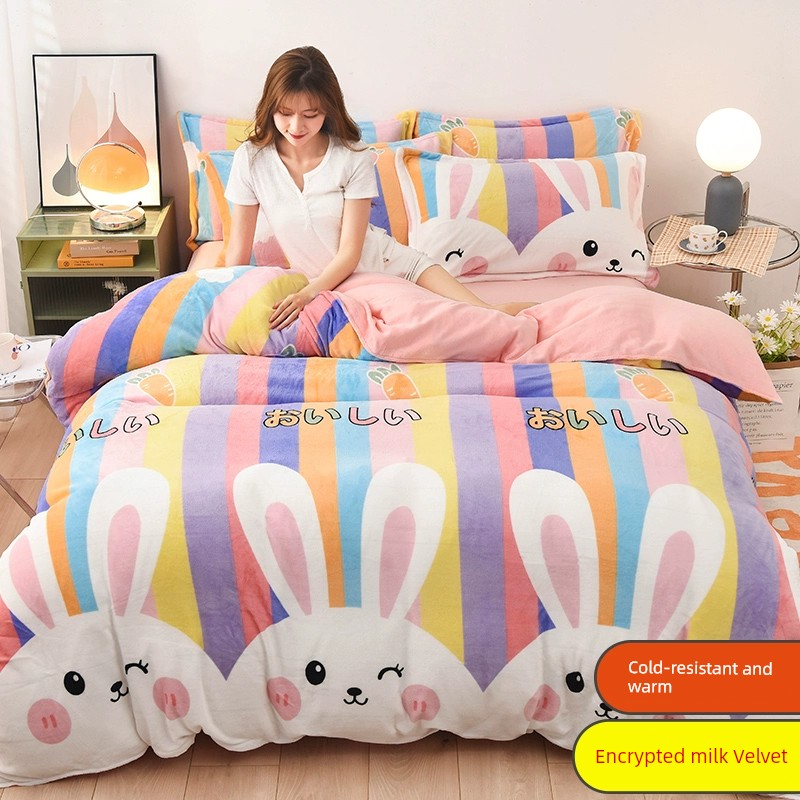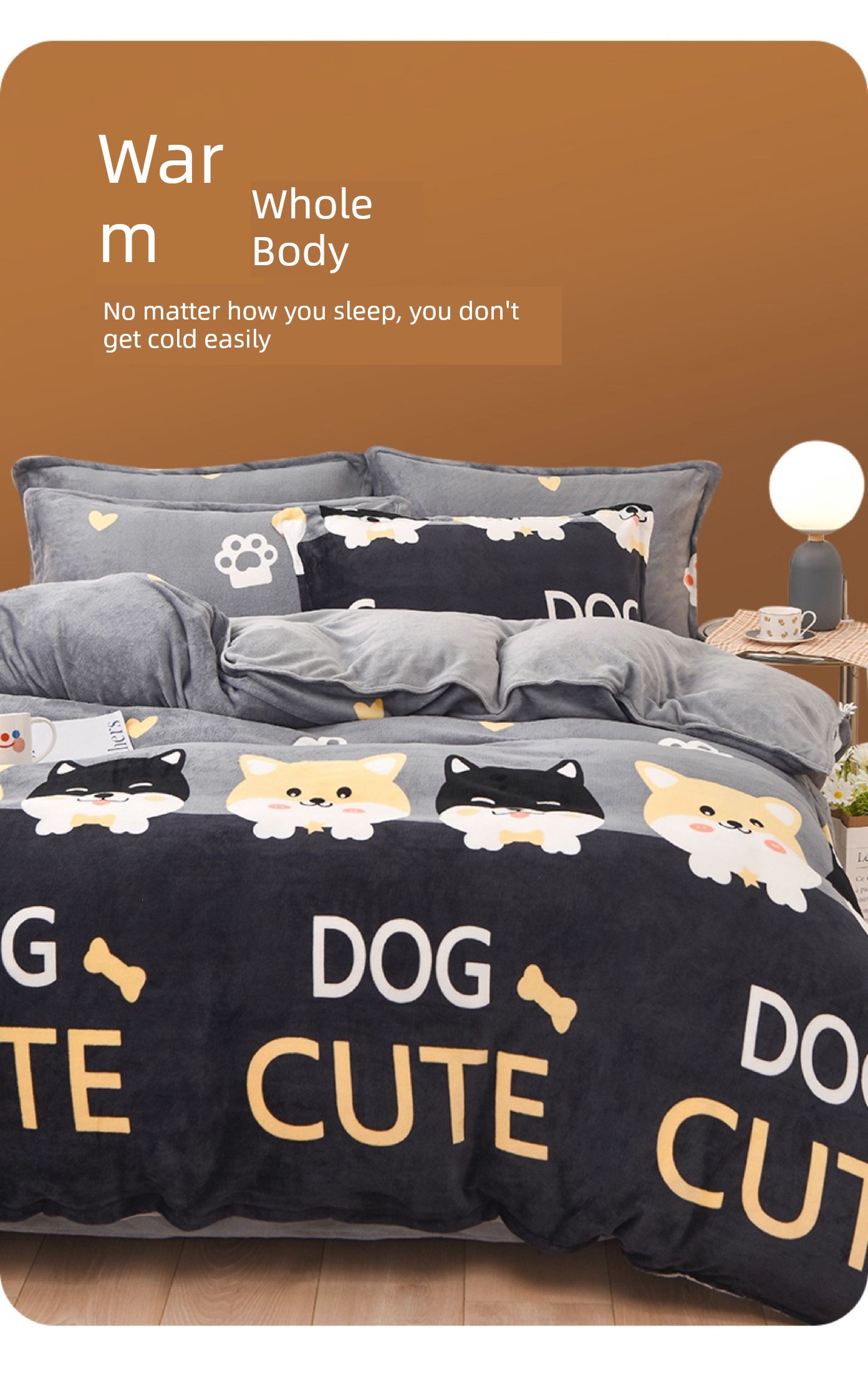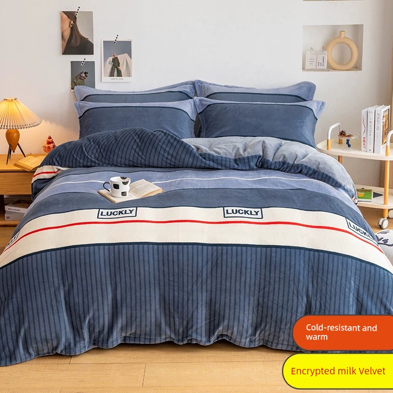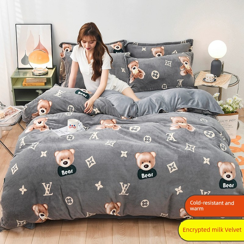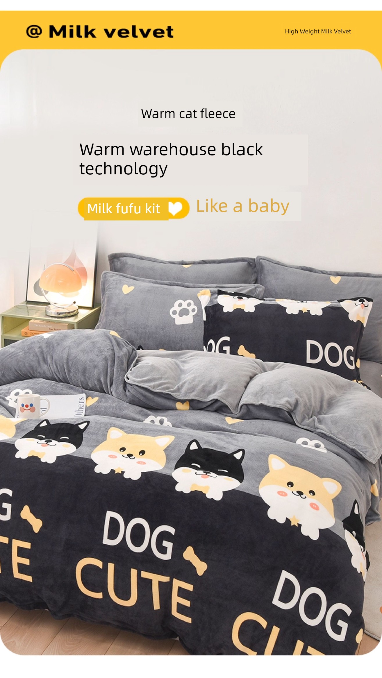 Winter Milk Fiber Duvet Cover One-Piece Coral Fleece Duvet Cover Fleece-lined Thickened Double-Sided Fleece 150 Single 180x200x230