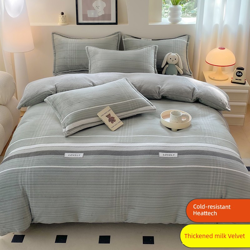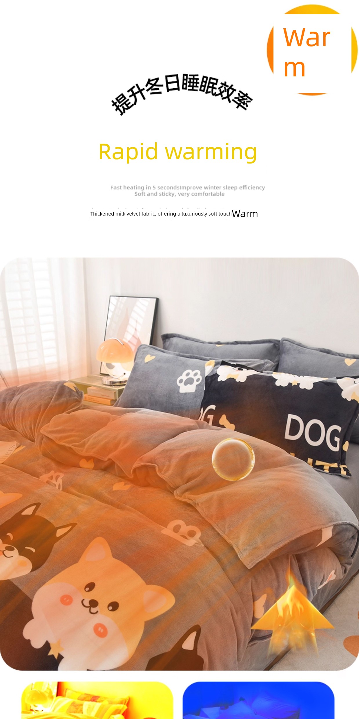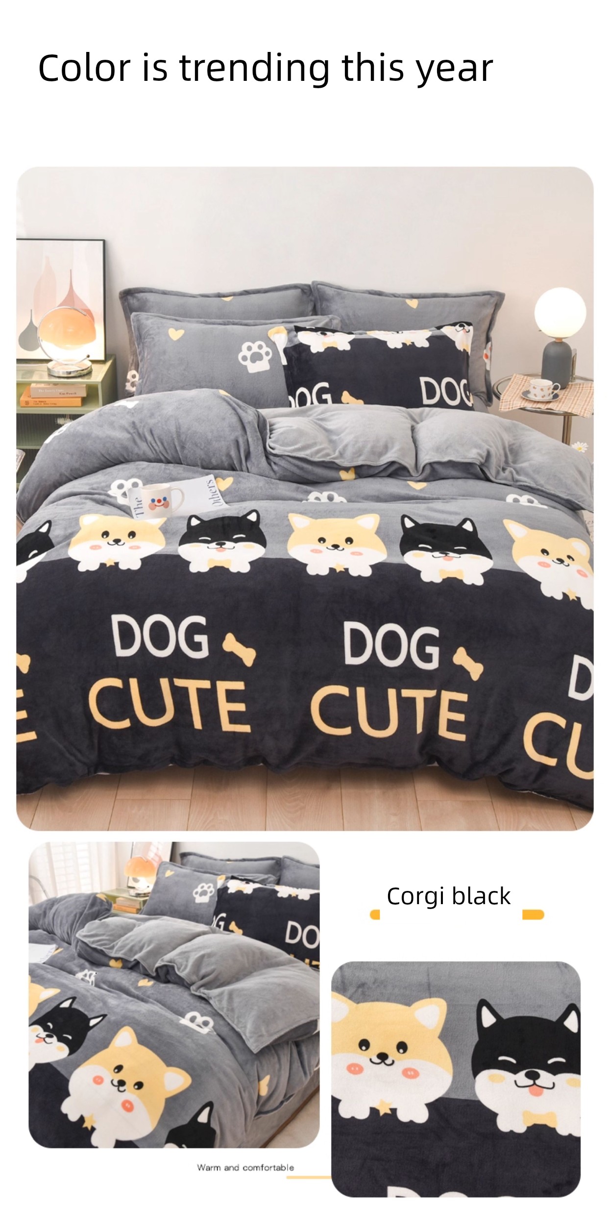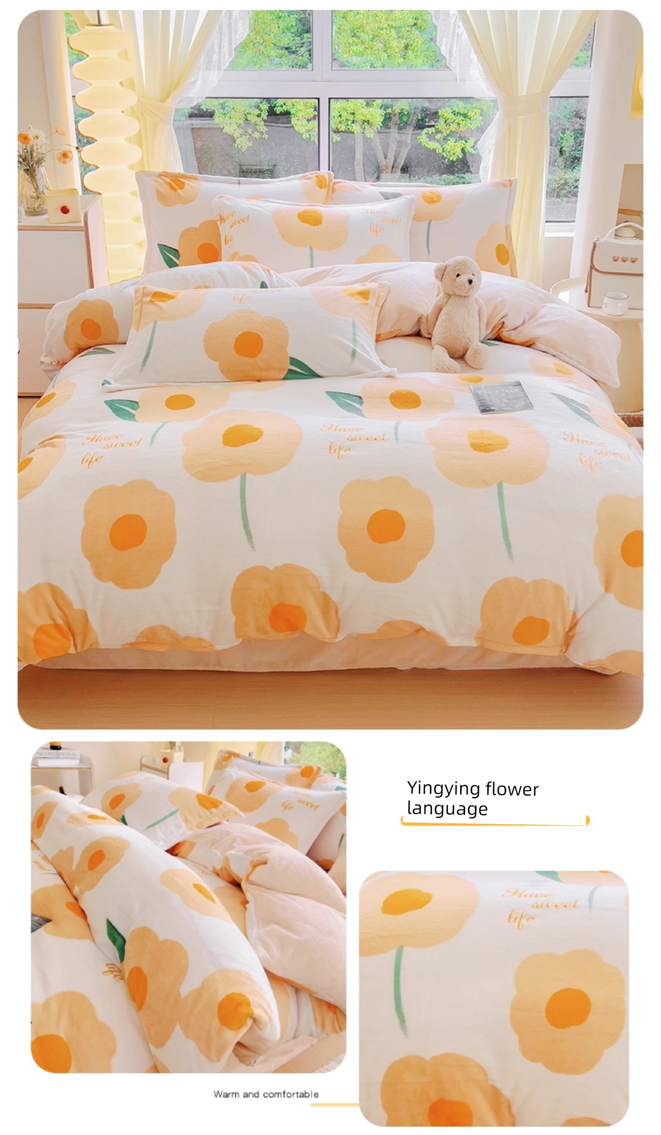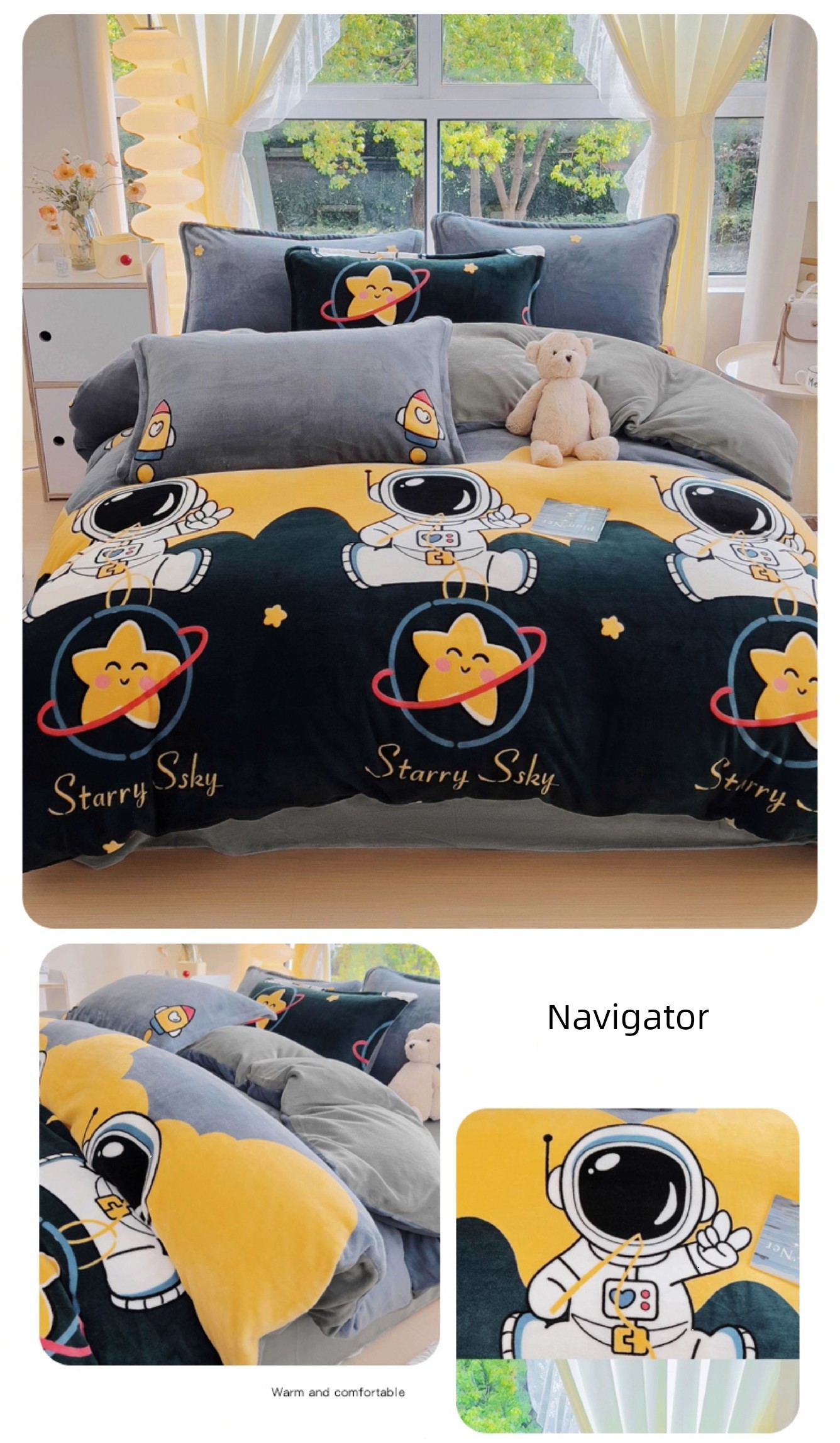 Winter Milk Fiber Duvet Cover One-Piece Coral Fleece Duvet Cover Fleece-lined Thickened Double-Sided Fleece 150 Single 180x200x230