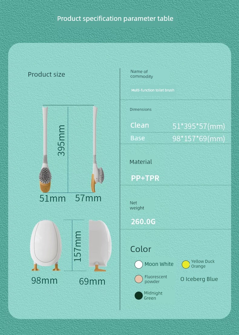 Drainage Base + No-Dead-Angle Brush Head + Bristle Brush + Hangable & Standable Design