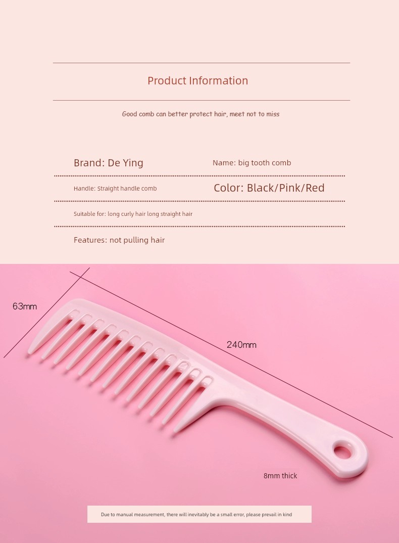 New Large Pink Wide Tooth Comb