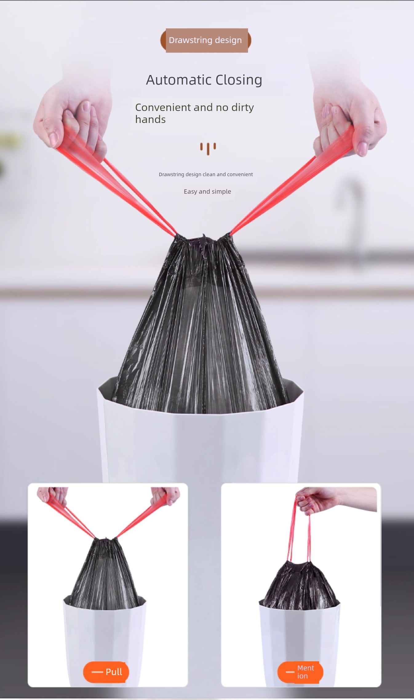 1 Roll of Drawstring [Upgraded Automatic Closing] Black
